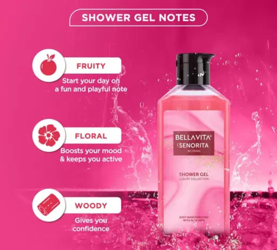– Senorita Women Body Wash (250ml): A lively, feminine shower gel enriched with aloe vera for nourishment. Its playful fragrance uplifts your mood, leaving your skin soft, smooth, and delicately scented.
