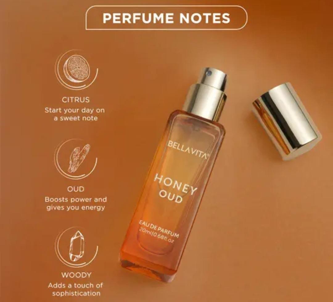 Experience exotic sweetness with the Bella Vita Organic Honey Oud Eau de Parfum (20ml), a premium unisex fragrance crafted for both men and women. This perfume blends the richness of oud with the delicate sweetness of honey, enhanced by floral and fruity accords that deliver a refreshing, long-lasting scent.