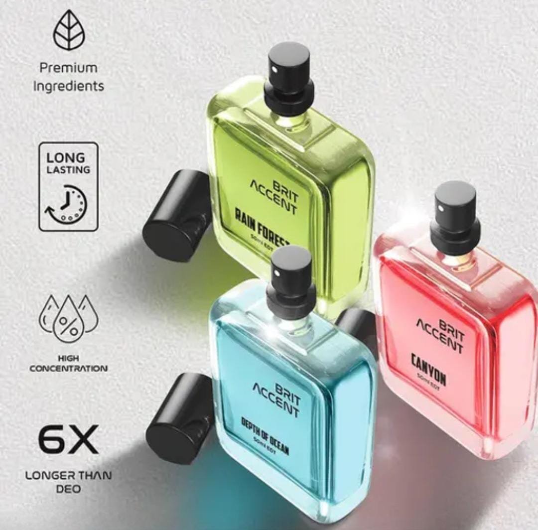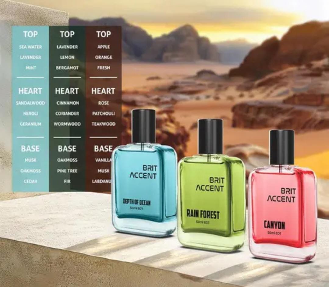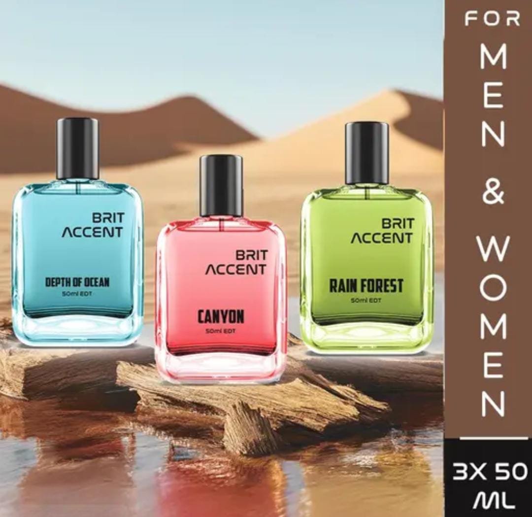 Elevate your fragrance collection with the Brit Accent Eau de Toilette Combo – Depth of Ocean, Canyon & Rainforest (3 × 50ml), a premium trio curated for both men and women. This set brings together three distinct inspirations from nature, offering versatility, elegance, and freshness in one package.