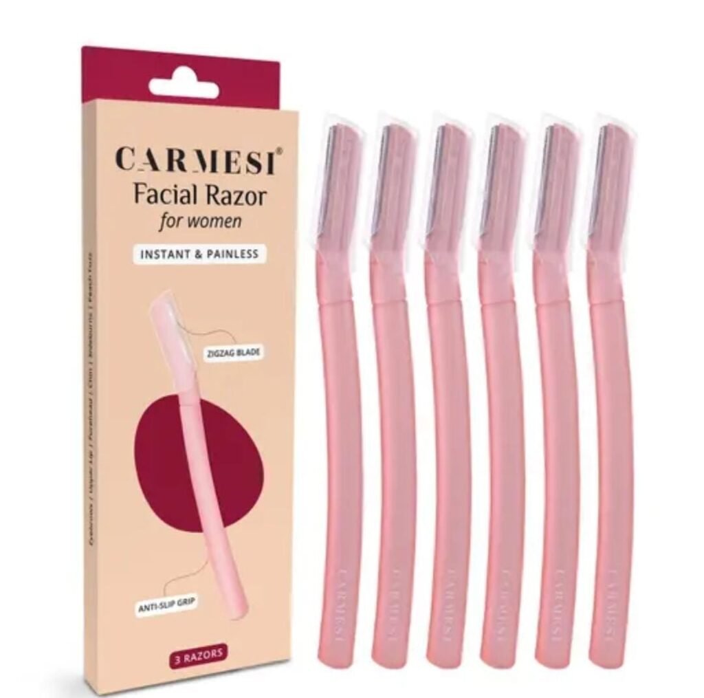 Achieve smooth, radiant skin with the Carmesi Reusable Face Razor for Women (Pack of 6). Designed for safe and painless facial hair removal, this dermaplaning tool helps you get rid of unwanted hair instantly while exfoliating dead skin cells for a brighter complexion.