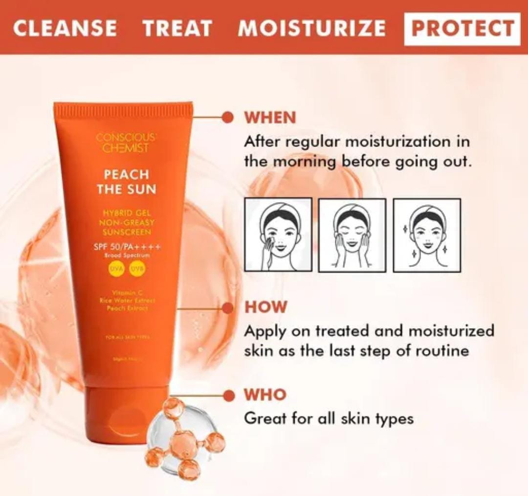 Conscious Chemist Peach The Sun Sunscreen SPF 50 PA++++ 50g Key Features