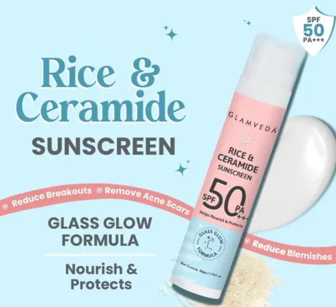 Glamveda Glass Skin Rice & Ceramide Sunscreen SPF 50 PA+++ 100gm Single Pack Key Features