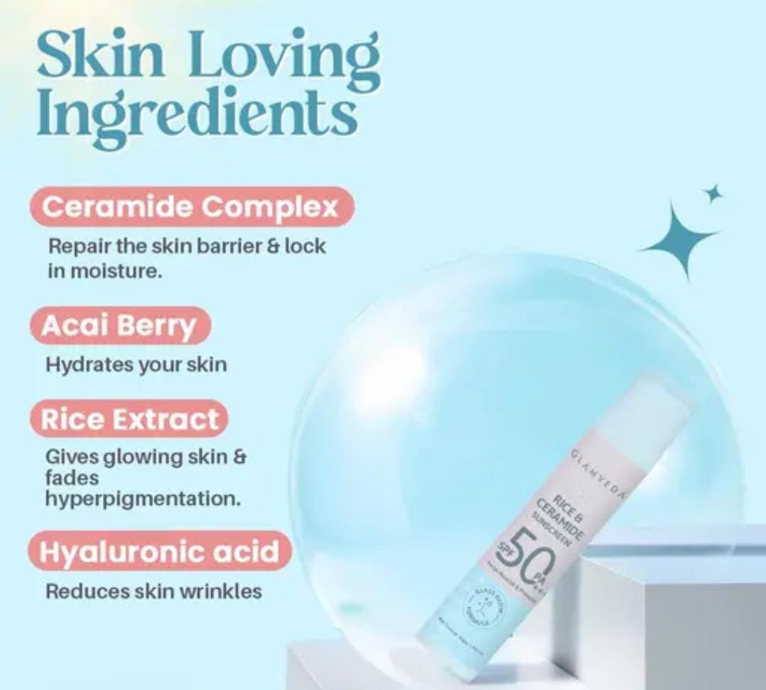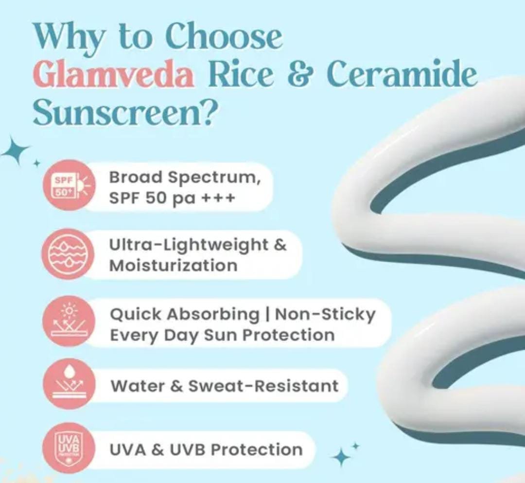 Glamveda Glass Skin Rice & Ceramide Sunscreen SPF 50 PA+++ Pack of 3 Key Features
