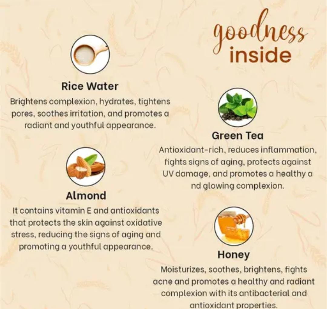 – Brightens Skin: Rice extracts exfoliate gently and restore glow.