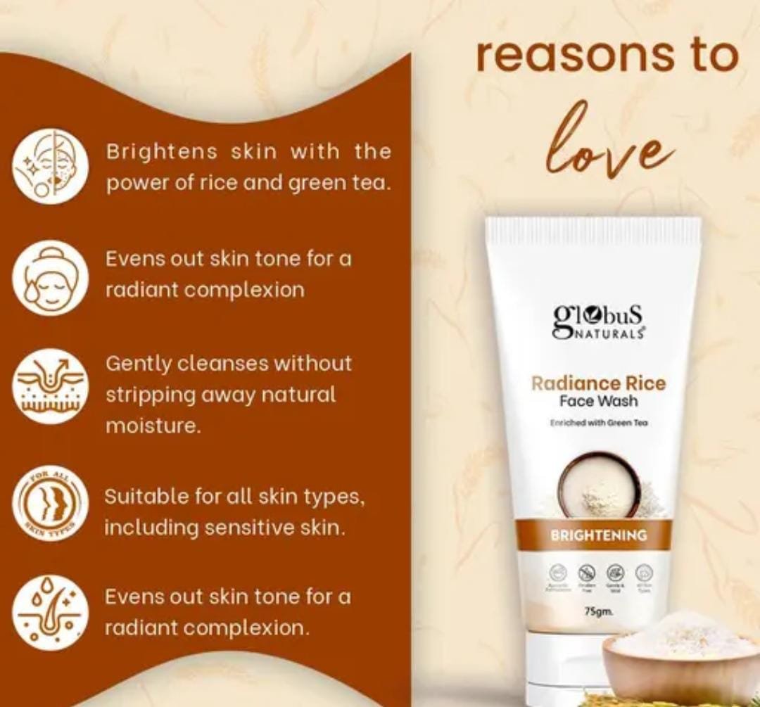 Globus Naturals Radiance Rice Face Wash Pack of 3 × 75g Key Features