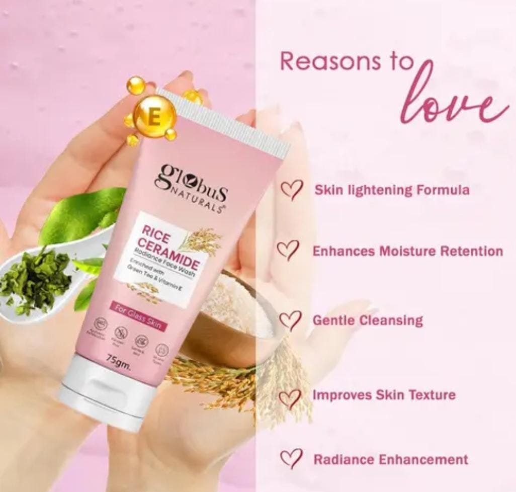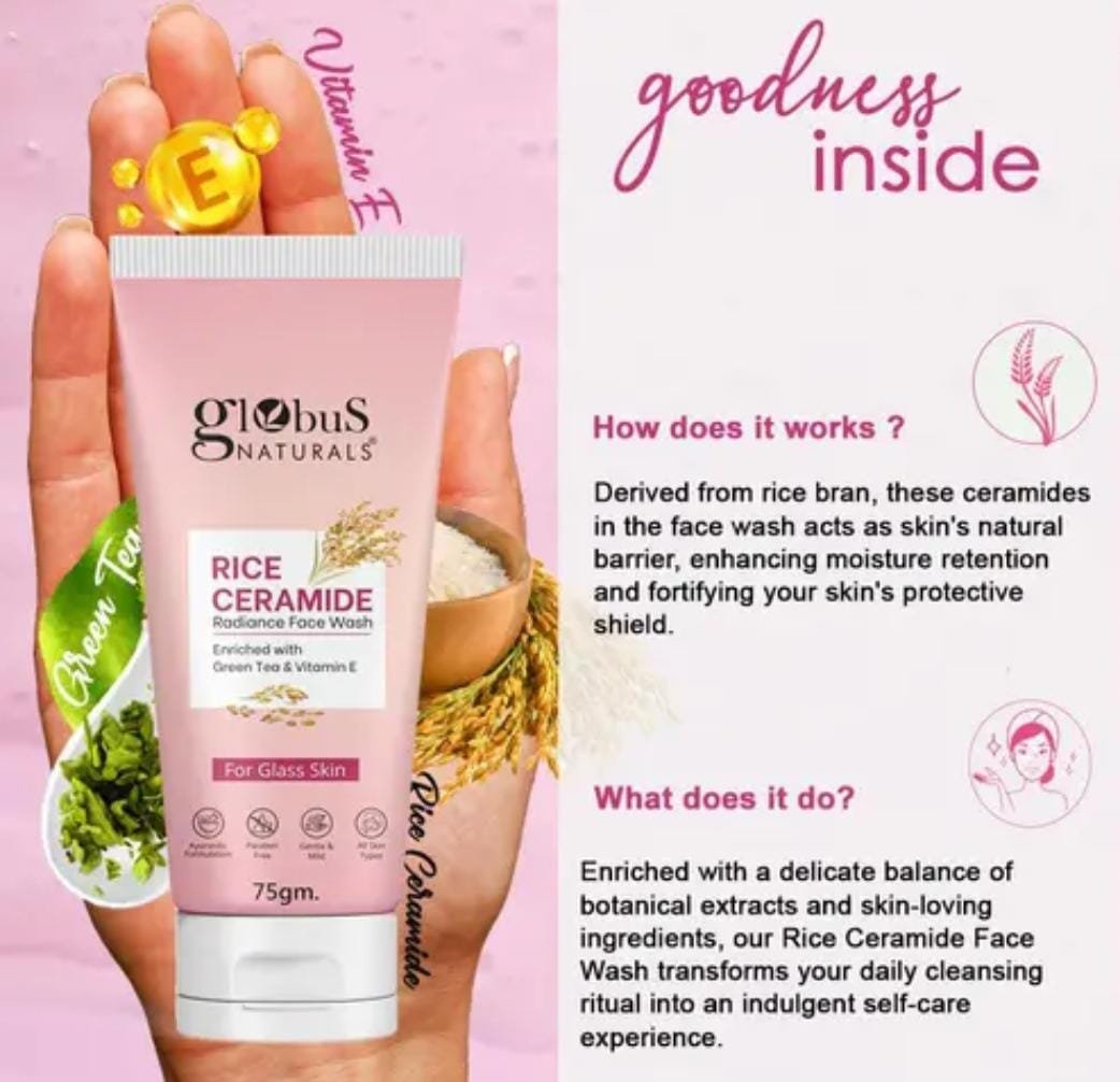 Globus Naturals Rice Ceramide Radiance Face Wash Pack of 5 × 75g Key Features