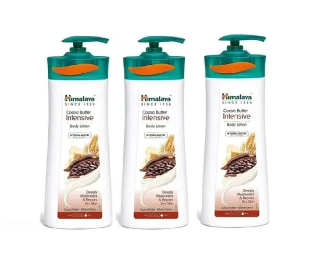 Three 400ml bottles of Himalaya Cocoa Butter Intensive Body Lotion.