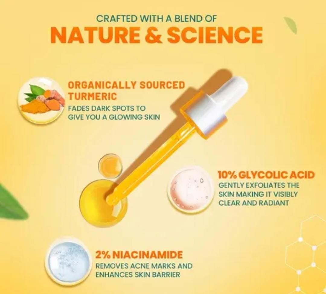 Its blend of turmeric and herbal actives for spot clearing + glow restoration.