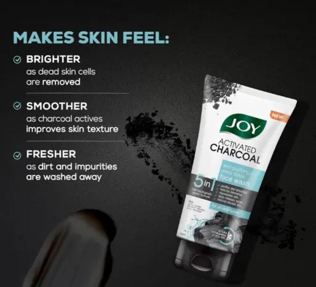 Detoxify and refresh your skin with the Joy Activated Charcoal Skin Purifying + Deep Detox Face Wash (100ml × 2 Pack). Powered by the cleansing strength of activated charcoal, this face wash is designed to draw out impurities, unclog pores, and leave your skin purified, fresh, and radiant.