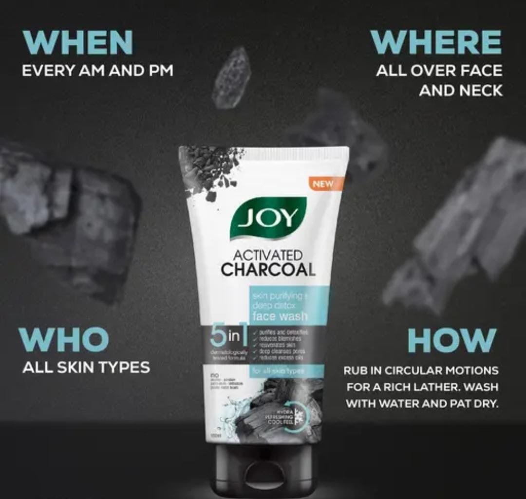 Purify and refresh your skin with the Joy Charcoal Face Wash Deep Detox with Niacinamide (150ml × 2 Pack). Specially formulated for normal to oily skin, this face wash combines the detoxifying power of activated charcoal with the skin-strengthening benefits of niacinamide to deliver clear, balanced, and radiant skin.