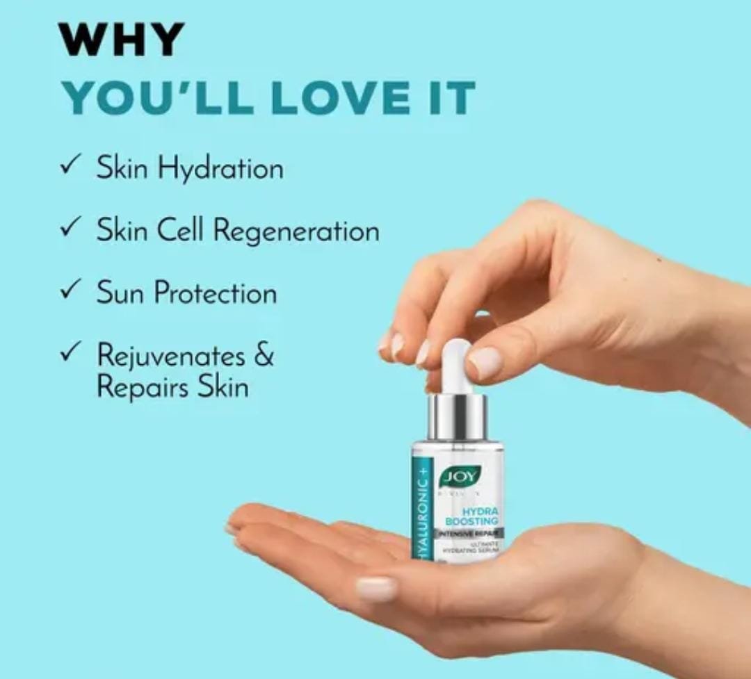 Transform your skincare routine with the Joy Hyaluronic + Hydra Boosting Intensive Repair Ultimate Hydrating Serum (30ml). This advanced serum is powered by hyaluronic acid and hydra boosting actives, designed to deliver intense hydration, repair dryness, and restore skin’s natural glow.