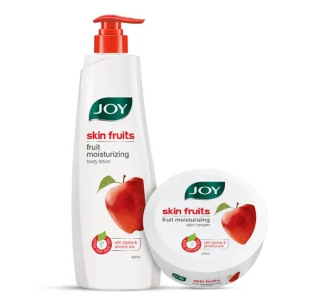 Indulge your skin in fruity nourishment with the Joy Skin Fruits Fruit Moisturizing Apple Body Lotion (500ml) and Joy Skin Fruits Fruit Moisturizing Apple Skin Cream (200ml) Combo. Infused with the goodness of apple extract, jojoba oil, and almond oil, this combo delivers deep hydration, restores glow, and keeps skin soft and supple all day long. Â