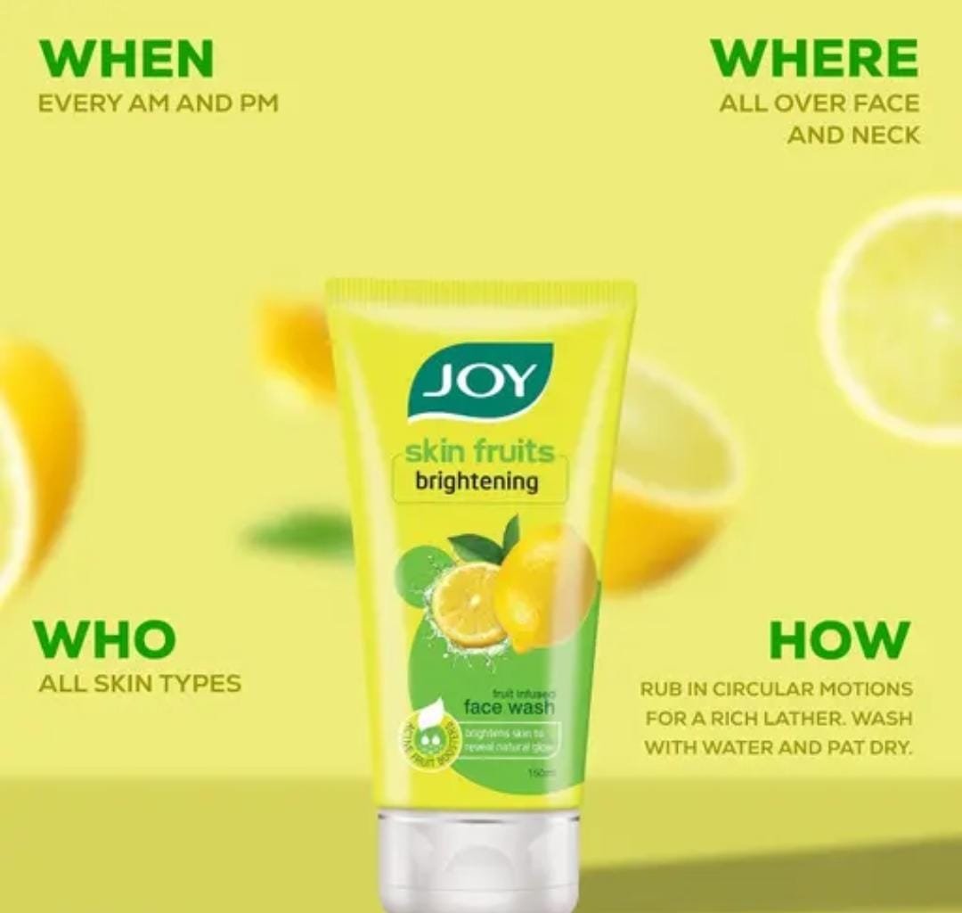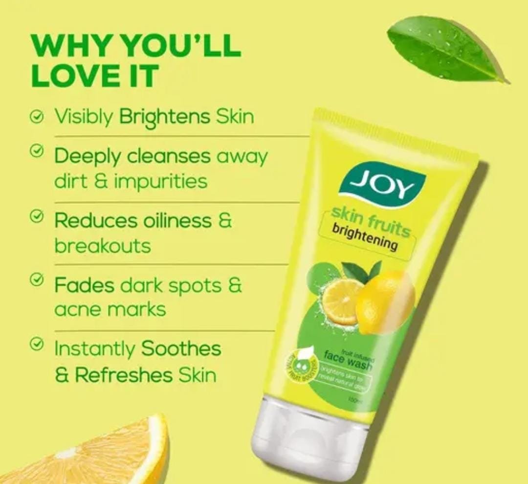 Refresh and energize your skin with the Joy Skin Fruits Lightening & Brightening Lemon Face Wash (100ml × 2 Pack). Infused with the natural goodness of lemon extract, this face wash gently cleanses, brightens, and revitalizes dull skin. Its oil-control formula helps reduce excess sebum, fade dark spots, and restore a clear, radiant complexion.
