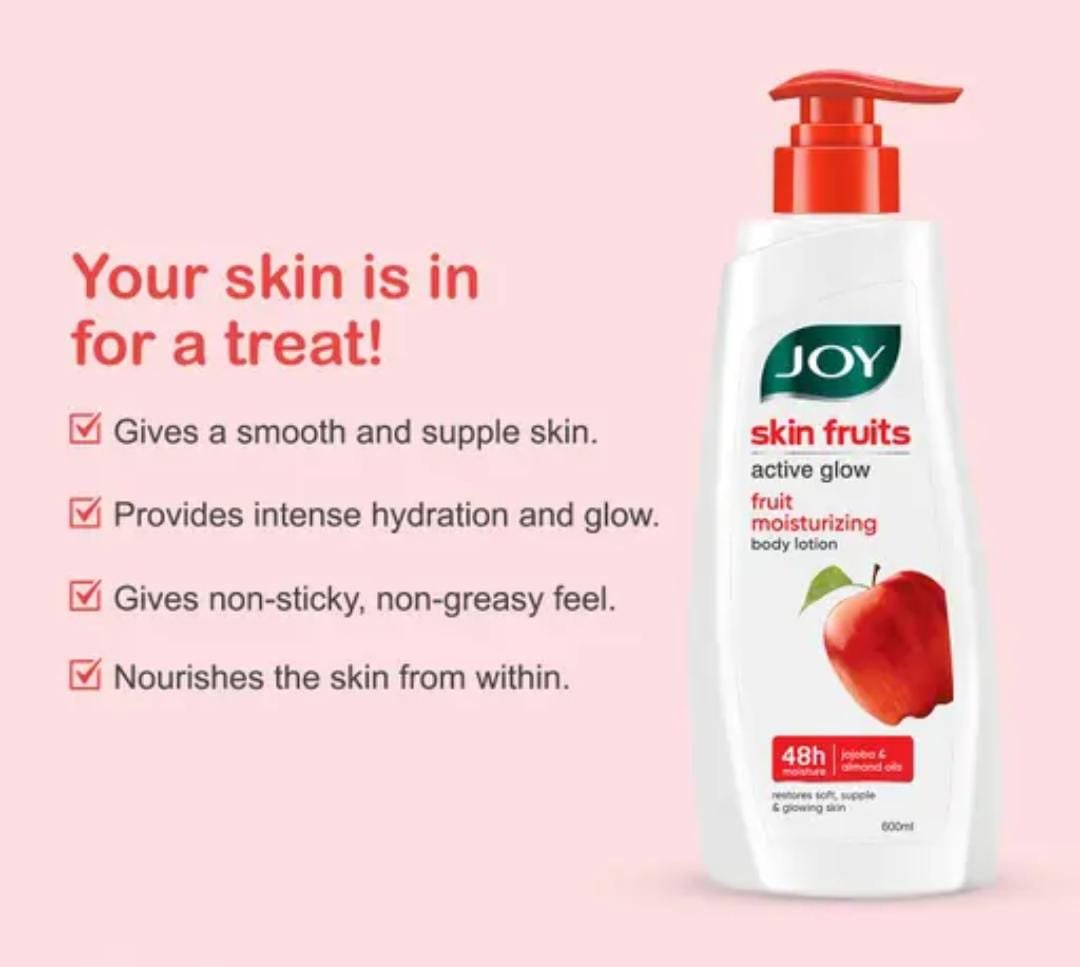 Beat the summer heat with Joy Skin Fruits Lightweight Body Lotion (600ml), a refreshing formula enriched with almond oil and jojoba oil. Specially crafted for Indian skin types, this lotion delivers non‑greasy hydration, skin nourishment, and long‑lasting softness without weighing your skin down. Perfect for hot and humid weather, it keeps your skin cool, supple, and radiant throughout the day.