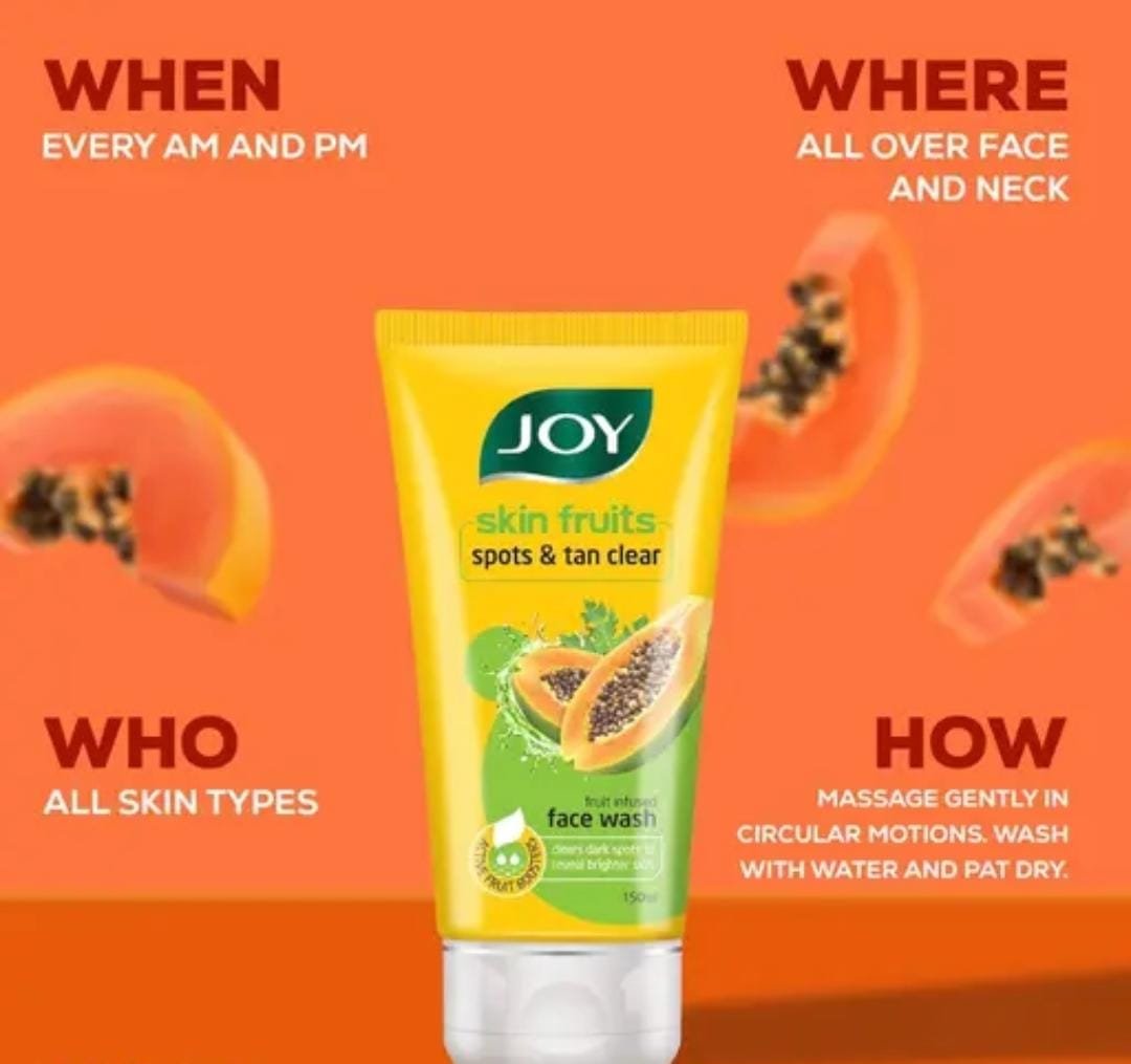 Brighten and refresh your skin with the Joy Skin Fruits Spots & Tan Clear Papaya Face Wash (100ml × 2 Pack). Enriched with the natural goodness of papaya extract, this face wash is specially formulated to target dark spots, blemishes, and tanning, leaving your skin clear, smooth, and radiant.