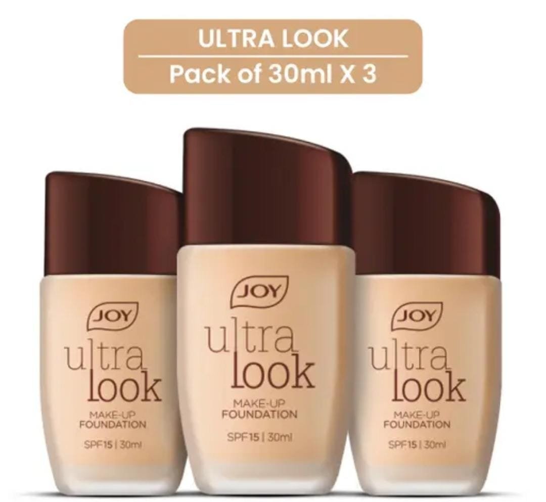 Achieve flawless, radiant skin with the Joy Ultra Look Makeup Foundation SPF 15 (30ml × 3 Pack). This lightweight foundation is designed to provide smooth coverage, even out skin tone, and protect against harmful sun rays with SPF 15. Perfect for daily wear, it blends seamlessly into the skin, leaving a natural, glowing finish without heaviness.