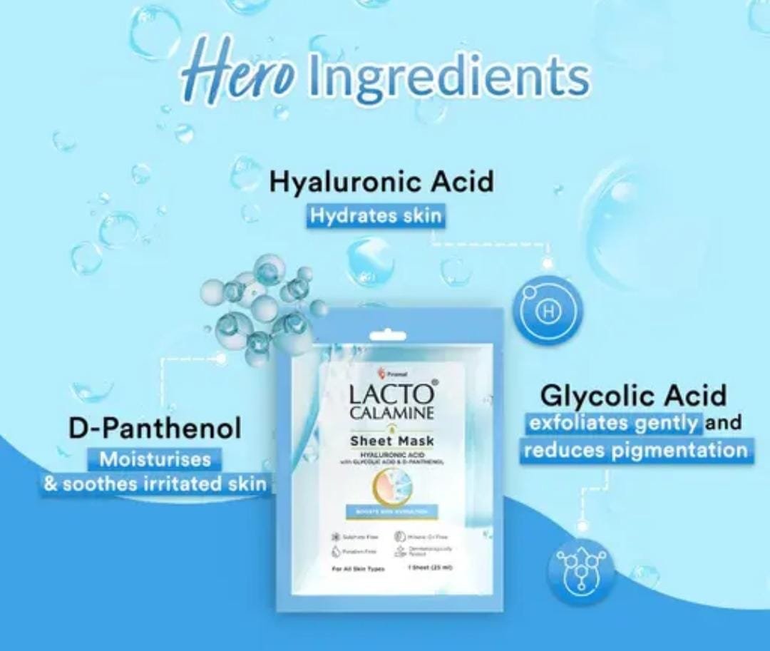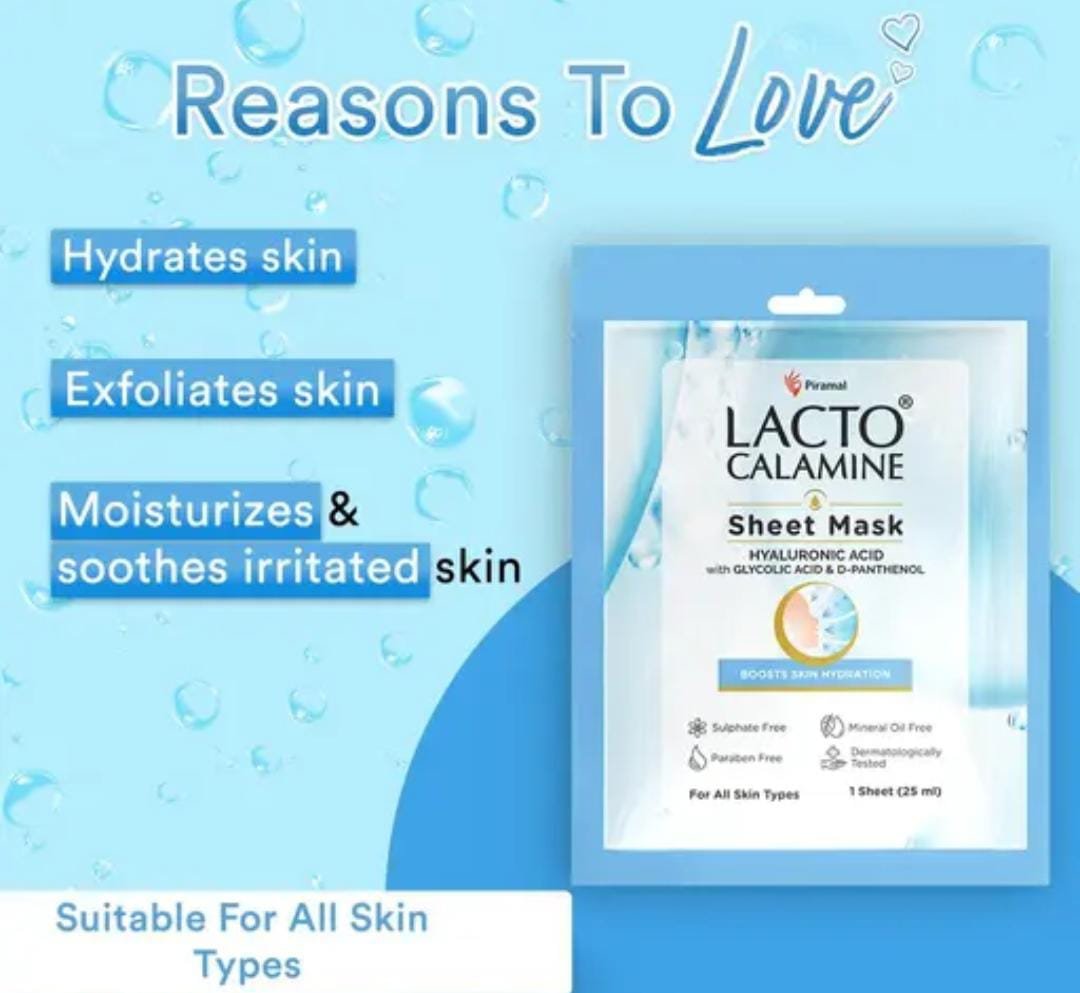 Lacto Calamine Hyaluronic Acid Face Sheet Mask Pack of 6 × 30g Key Features