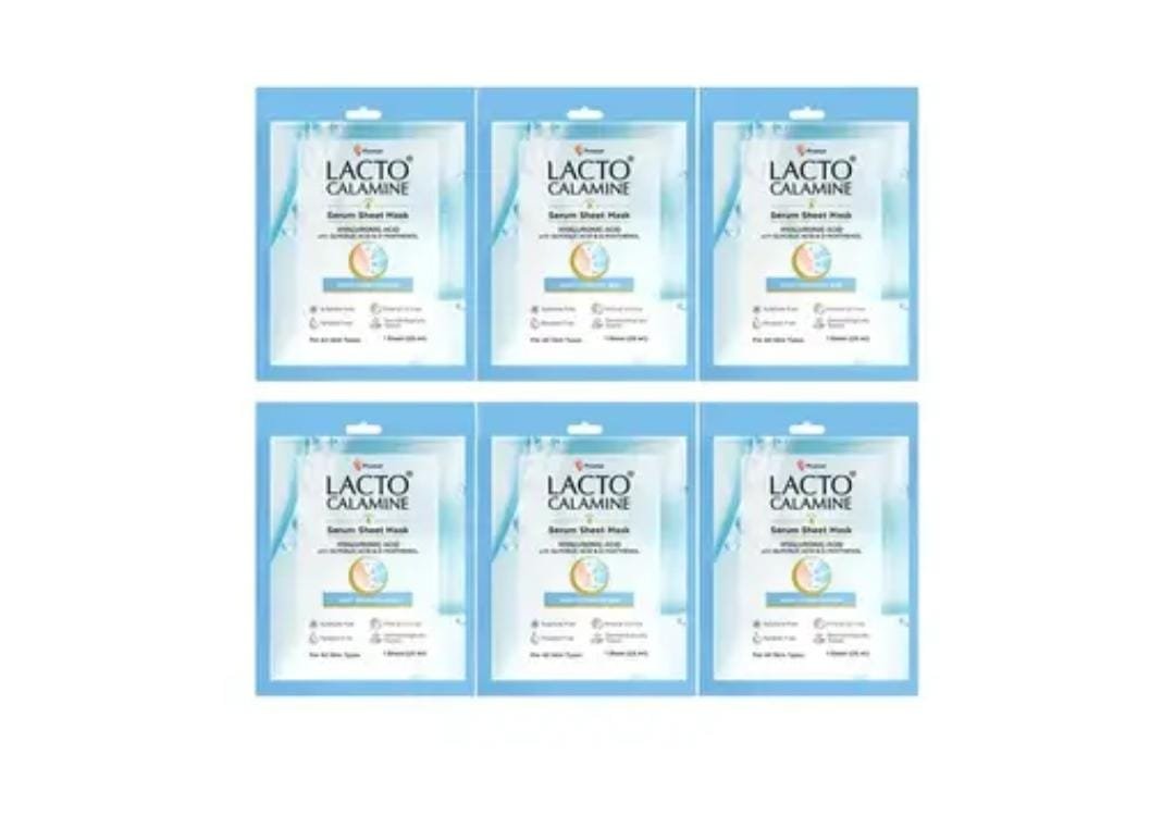 The Pack of 6 × 30g sheet masks comes in sleek, hygienic sachets with Lacto Calamine’s signature branding. Compact and travel-friendly, they’re perfect for home use, pampering, or gifting.