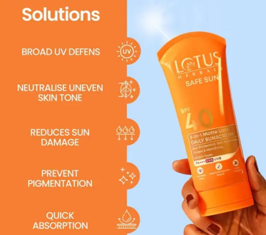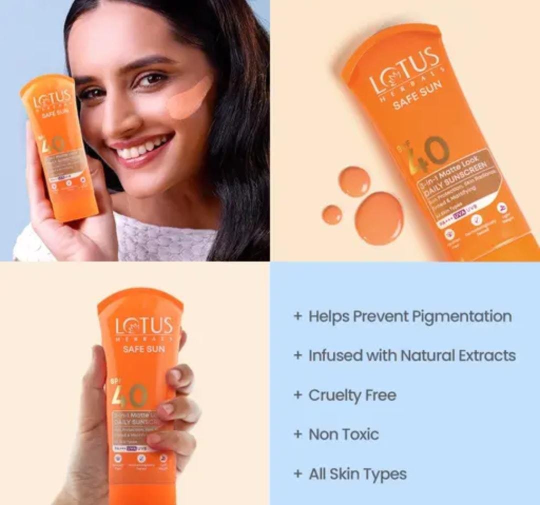 Lotus Herbals Safe Sun 3-in-1 Matte Look Tinted Sunscreen SPF 40 PA+++ 50g Key Features