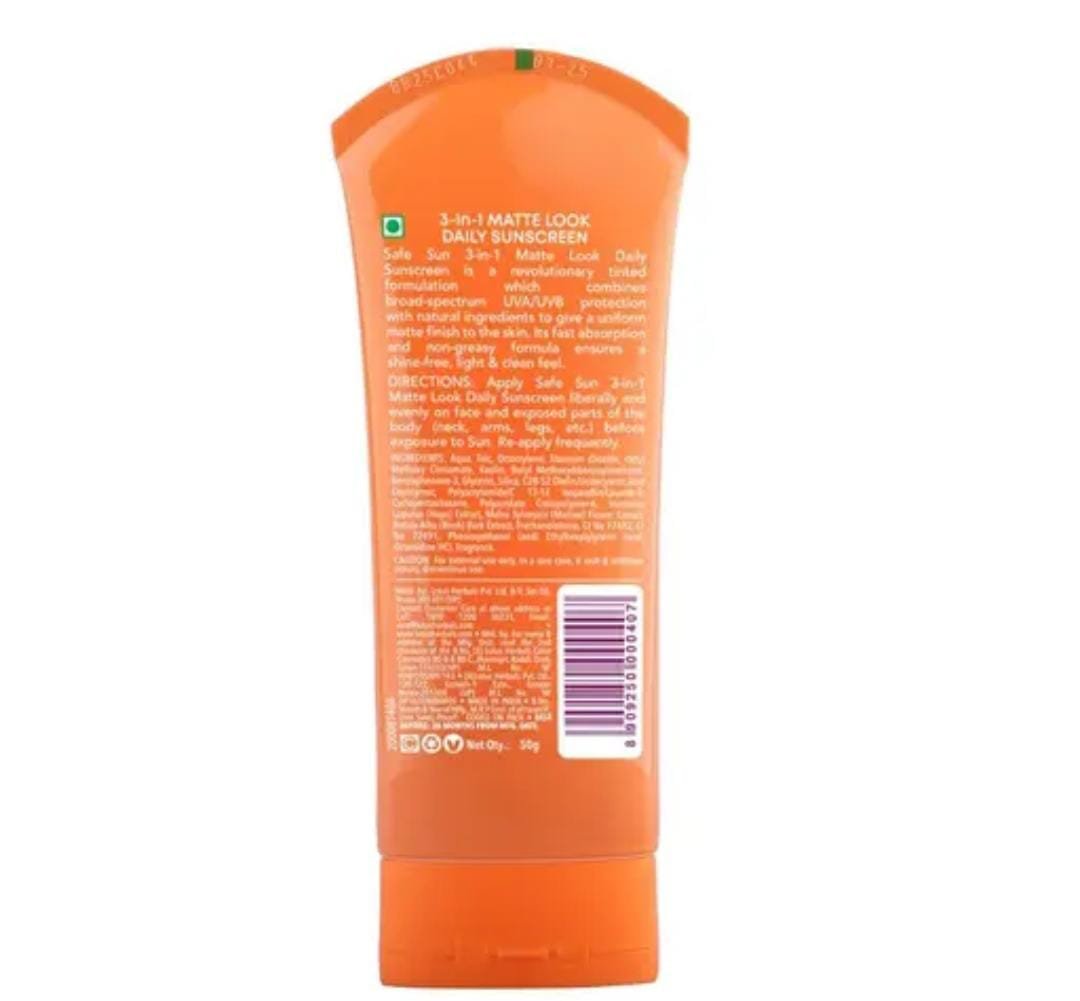 Achieve protection, coverage, and a flawless matte finish with Lotus Herbals Safe Sun 3-in-1 Matte Look Daily Tinted Sunscreen SPF 40 PA+++ (50g). This innovative sunscreen combines broad-spectrum UVA/UVB defense with skin-perfecting tint and oil-control properties, making it a true multitasker for everyday wear.