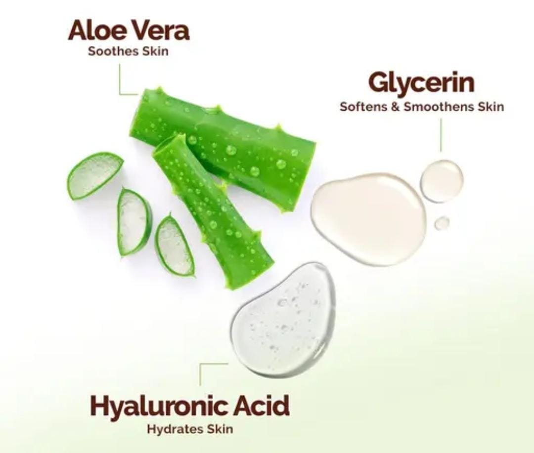 – Aloe Vera Extract: Provides cooling relief, hydrates deeply, and repairs dryness.
