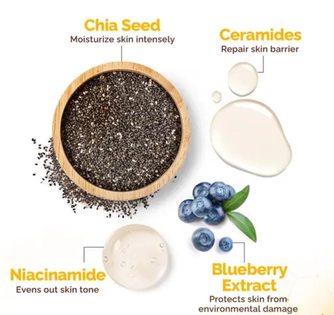 3. Hydrating Formula – Chia seed keeps skin calm and moisturized.