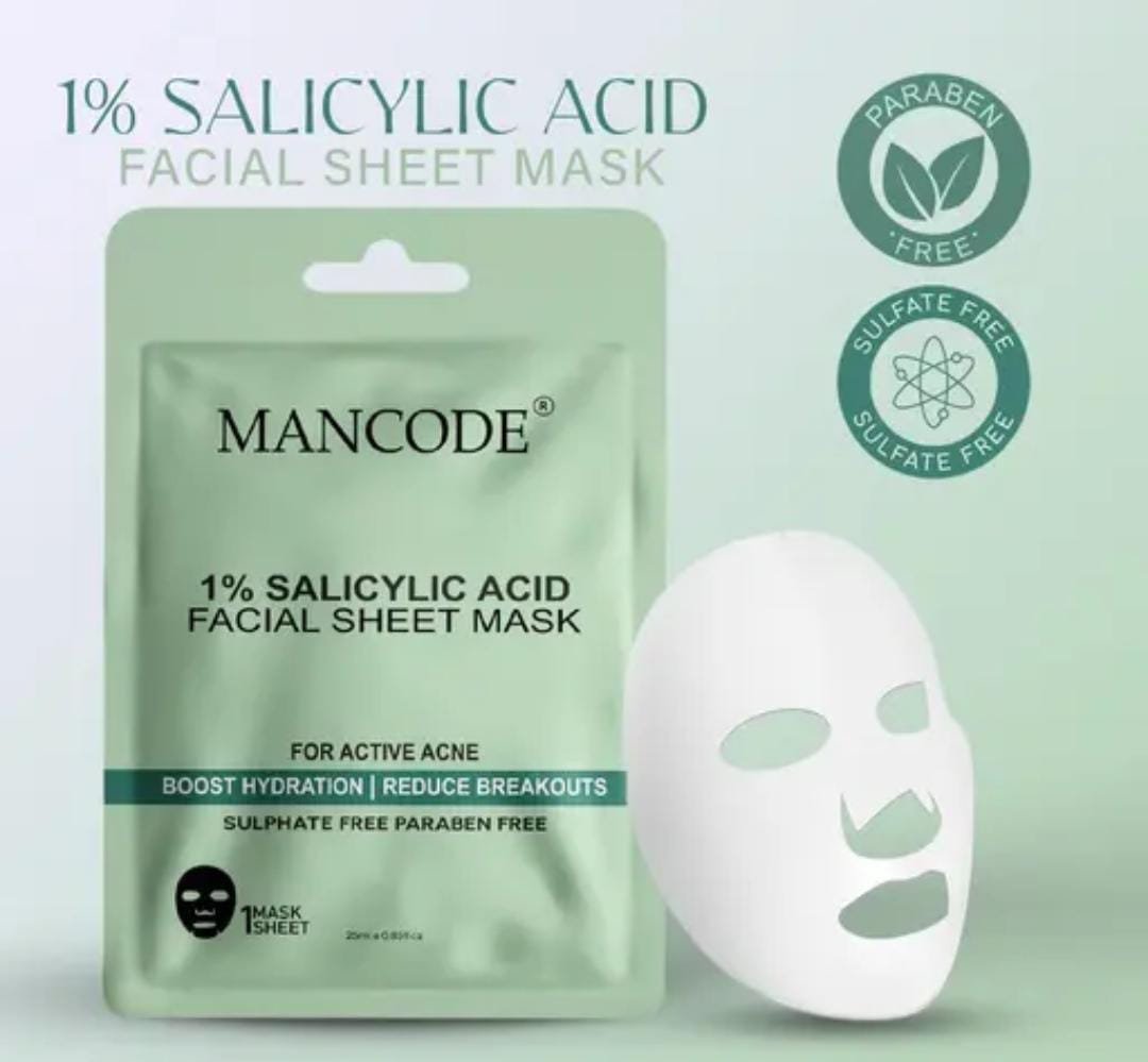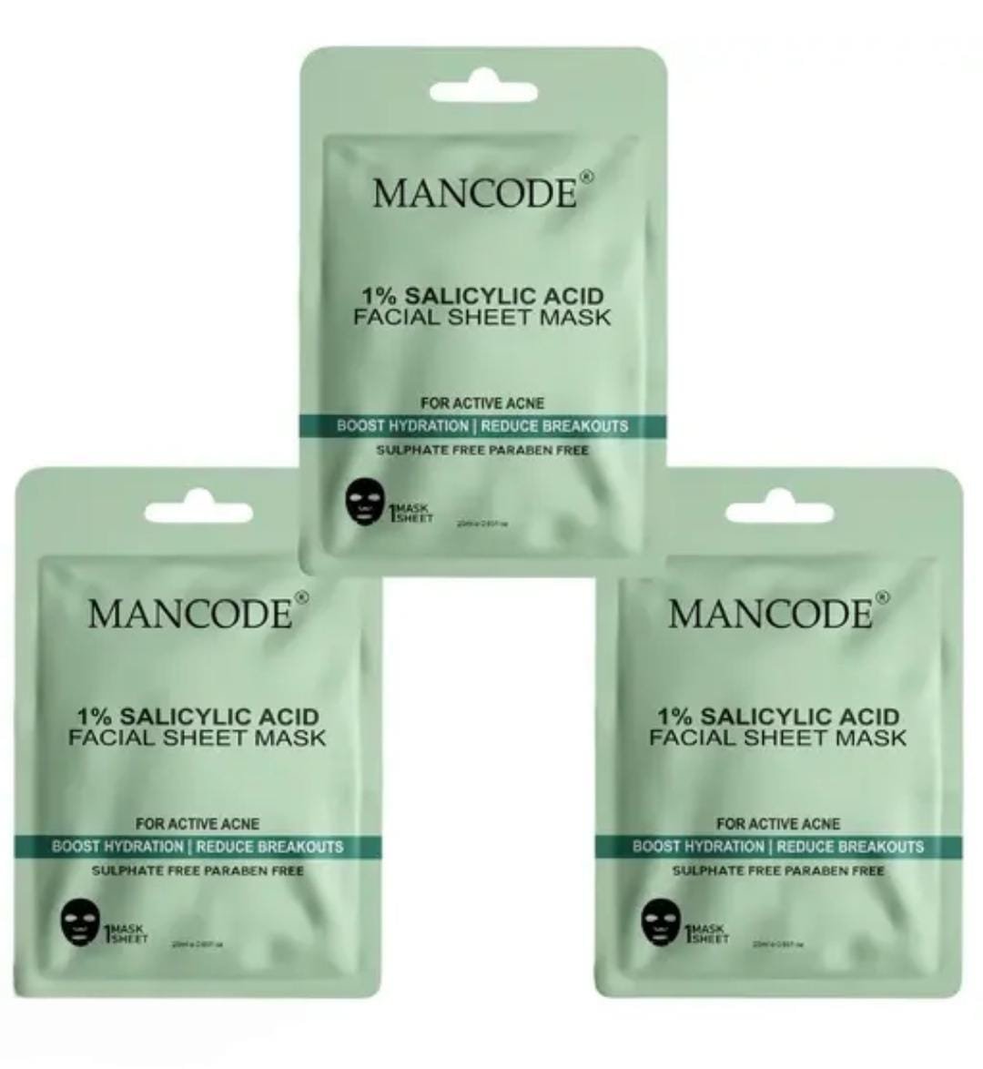 Mancode 1% Salicylic Acid Facial Sheet Mask Pack of 3 × 25g Key Features