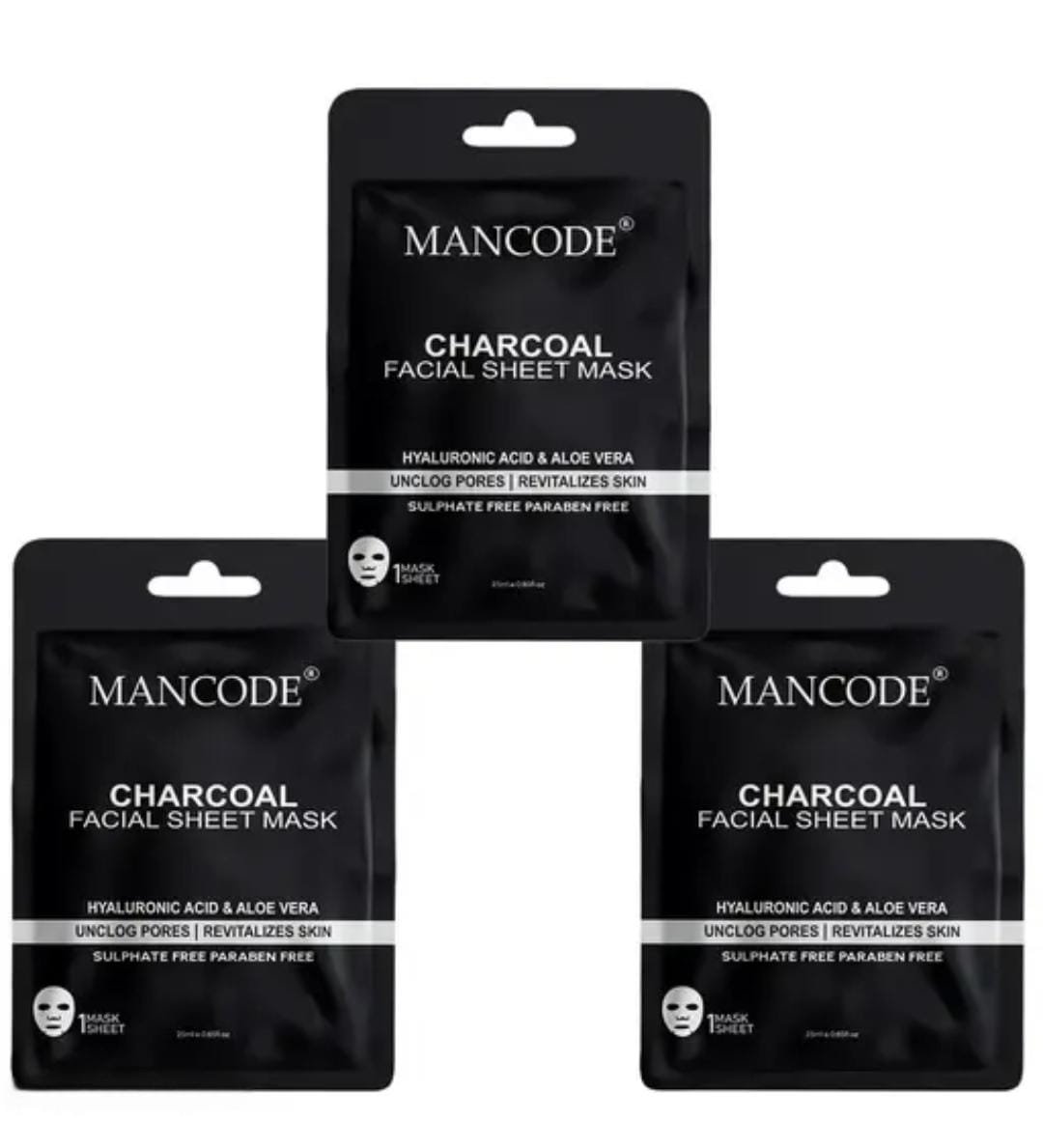 Mancode Charcoal Facial Sheet Mask Pack of 3 × 25g Key Features