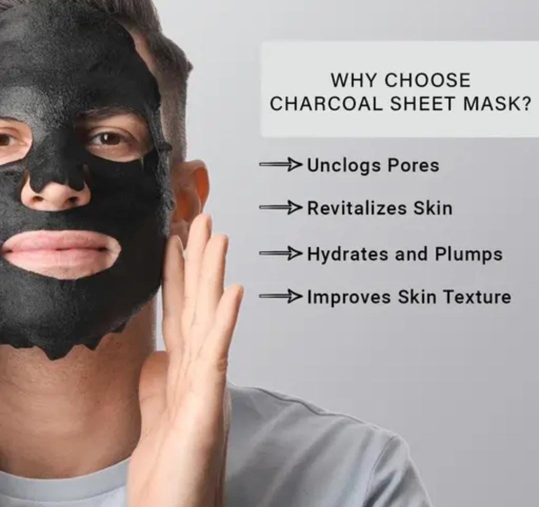 Detoxify and refresh your skin with the Mancode Charcoal Facial Sheet Mask (Pack of 3 × 25g). Specially designed for both men and women, this daily glow sheet mask combines the deep-cleansing power of charcoal with the hydrating benefits of hyaluronic acid and aloe vera. Inspired by Korean skincare formulas, it unclogs pores, revitalizes dull skin, and delivers instant hydration for a smooth, radiant complexion.