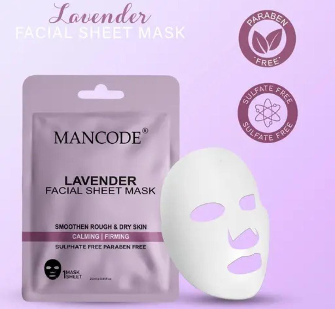 Mancode Lavender Facial Sheet Mask Pack of 3 × 25g Key Features