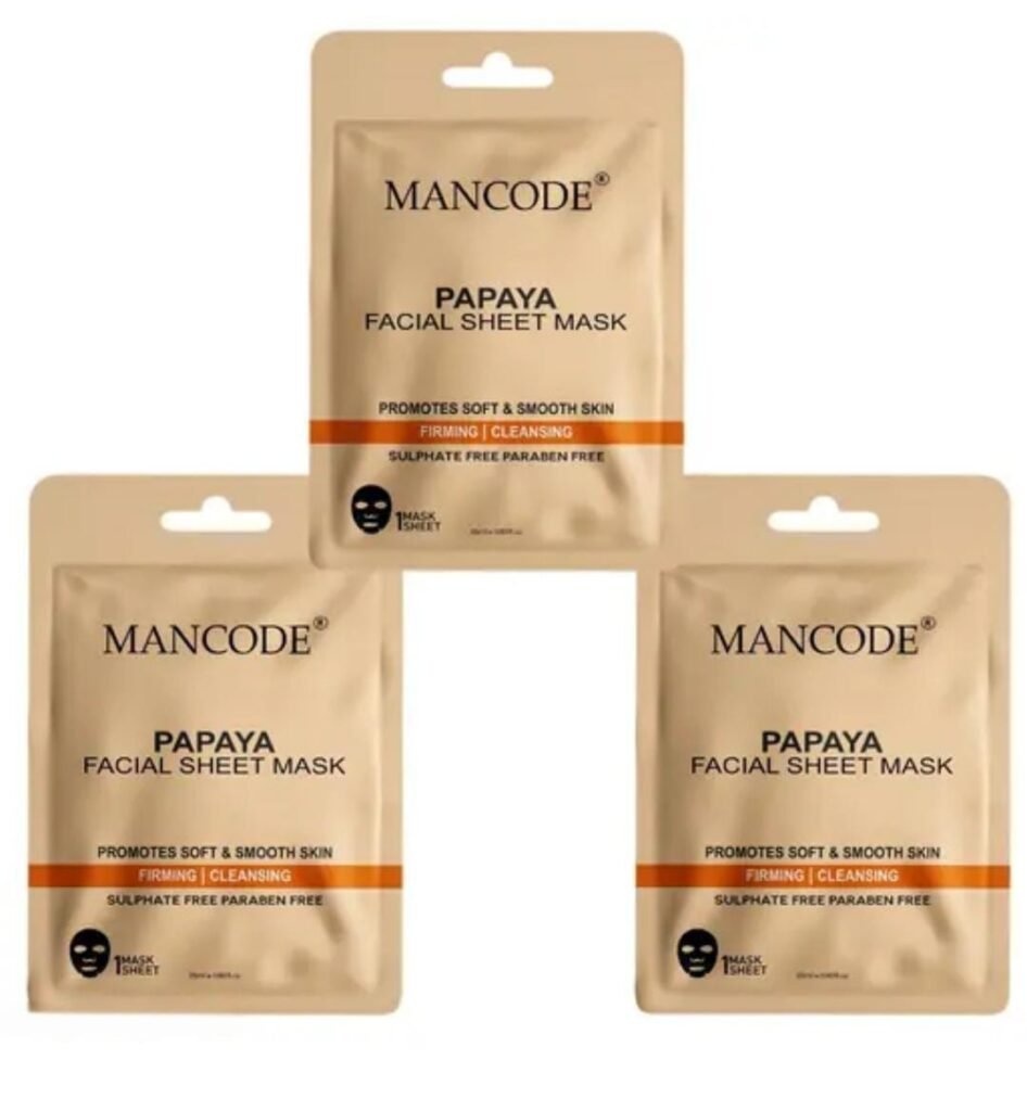 Mancode Papaya Facial Sheet Mask Pack of 3 × 25g Key Features