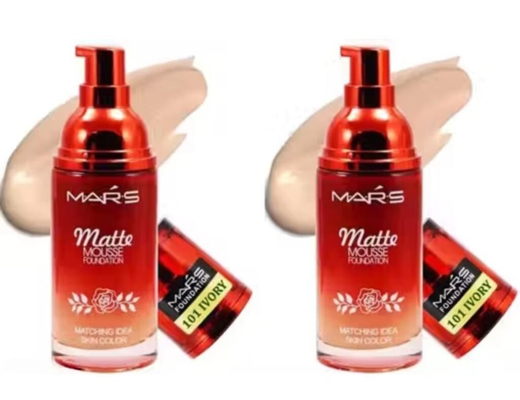 Experience breathable, buildable coverage with Mars Matte Mousse Foundation in Ivory, now available in a value pack of 2 (60ml each). This mousse-textured foundation delivers a soft matte finish, medium to full coverage, and long-lasting wear—perfect for daily use, festive glam, or professional makeup routines.