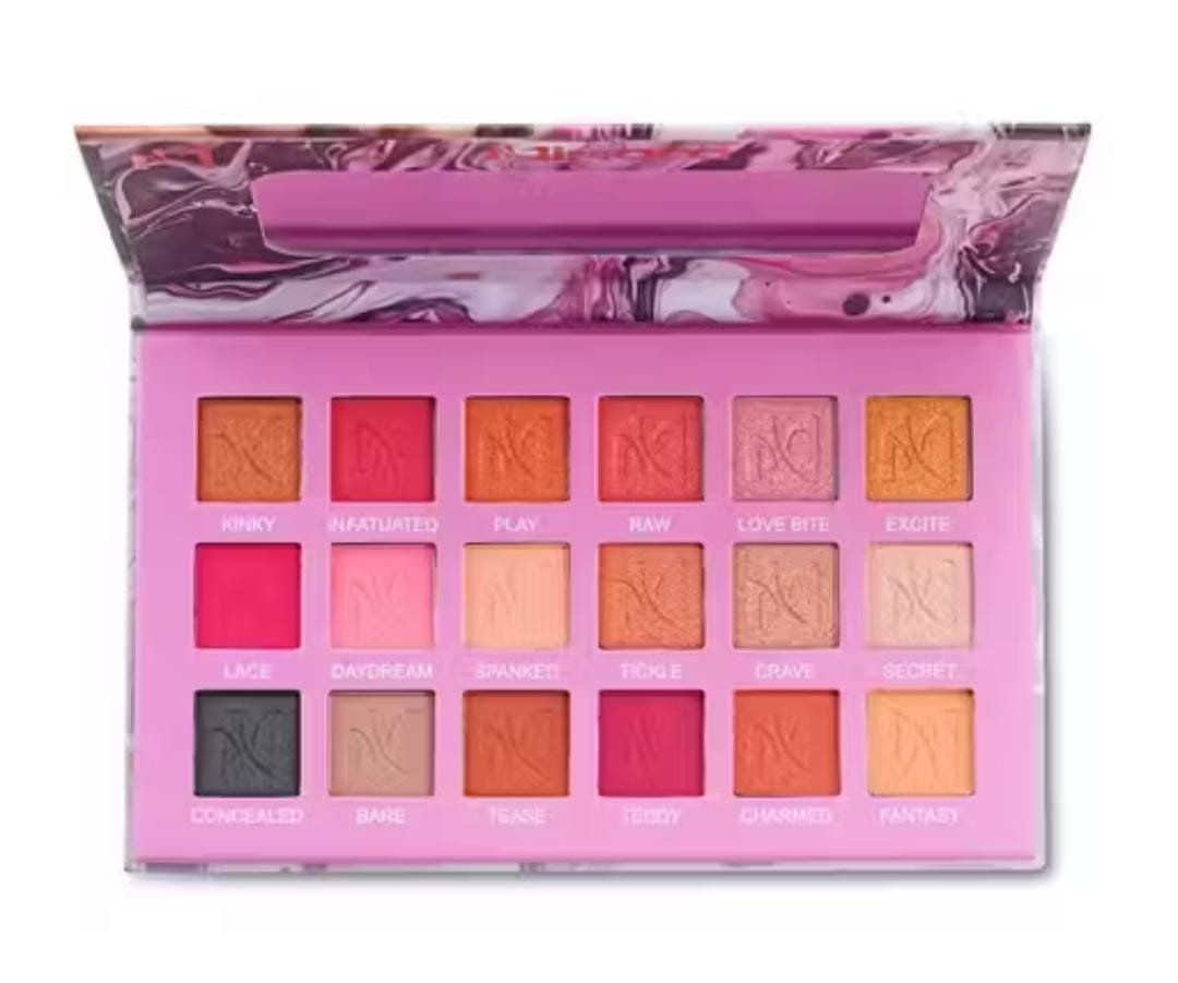 A mix of matte and shimmer shades curated for rose gold and soft glam eye looks.