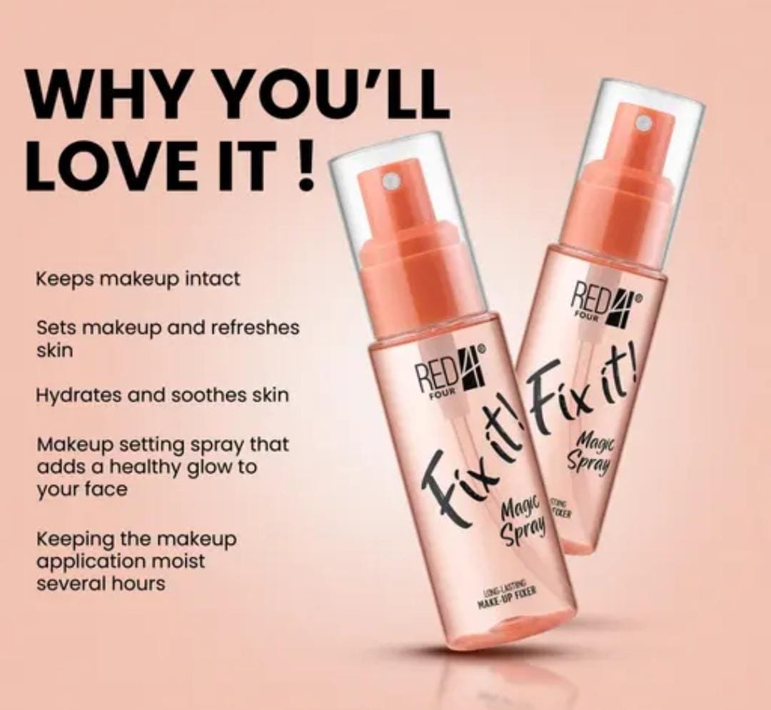 Lock in your flawless look with the Red4 Fixit Magic Spray Makeup Fixer. This hydrating, long-lasting setting spray is designed to keep your makeup fresh, smudge-proof, and radiant throughout the day. Infused with skin-refreshing properties, it not only fixes your makeup but also revitalizes your skin with a gentle mist.