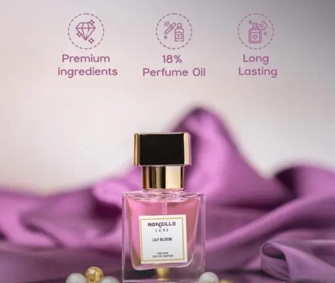 Step into freshness with Ronzille Luxe Eau de Parfum – Lily Bloom (30ml). Crafted for women who appreciate radiant floral scents, this fragrance highlights the delicate beauty of lily petals blended with jasmine and soft powdery accords. It delivers a graceful, uplifting aura that lingers throughout the day, making it perfect for casual wear, office hours, or evening occasions.