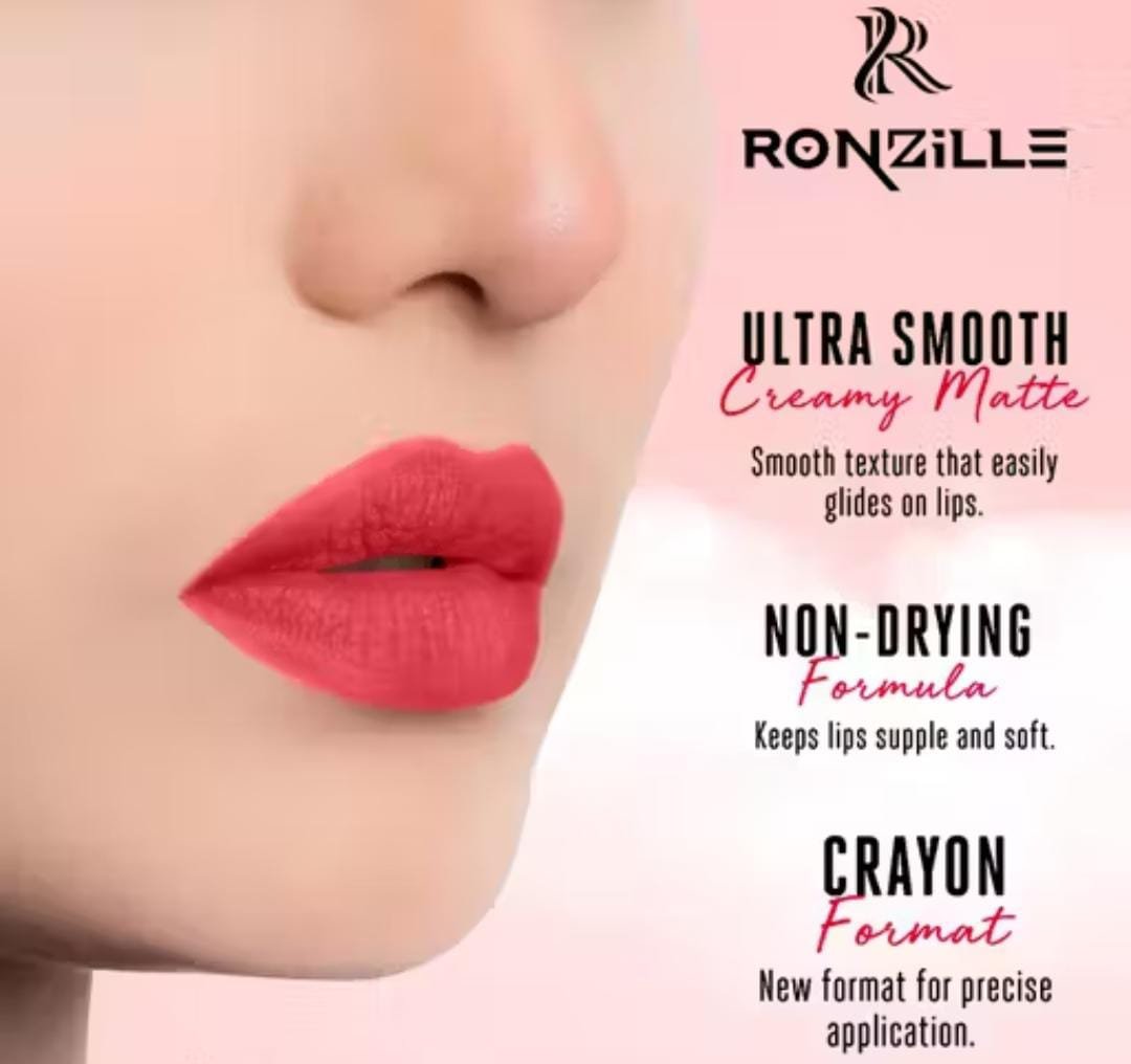 Ronzille is known for combining high-performance formulas with everyday practicality. This lip crayon reflects that ethos—delivering bold color, lasting wear, and skin-loving comfort in one elegant stick.
