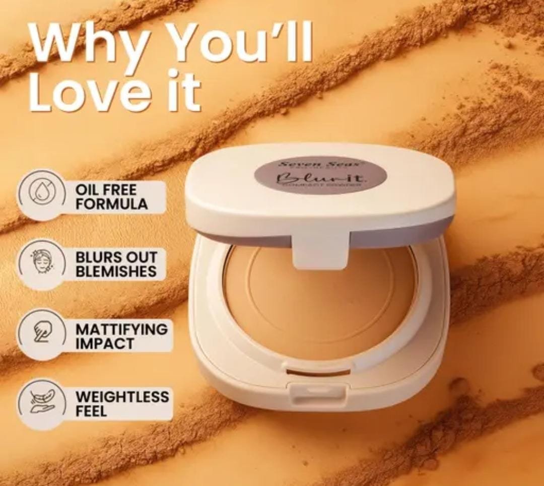 This Seven Seas Blur It Compact Powder in Nude is perfect for women who want a fuss-free, everyday essential that combines coverage, oil control, and soft-focus blurring in one sleek compact.