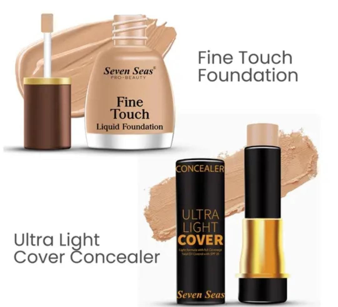 Comes in sleek, travel-friendly tubes with Seven Seas branding. The pack of 2 combo ensures you have both concealer and foundation for a complete base makeup routine.