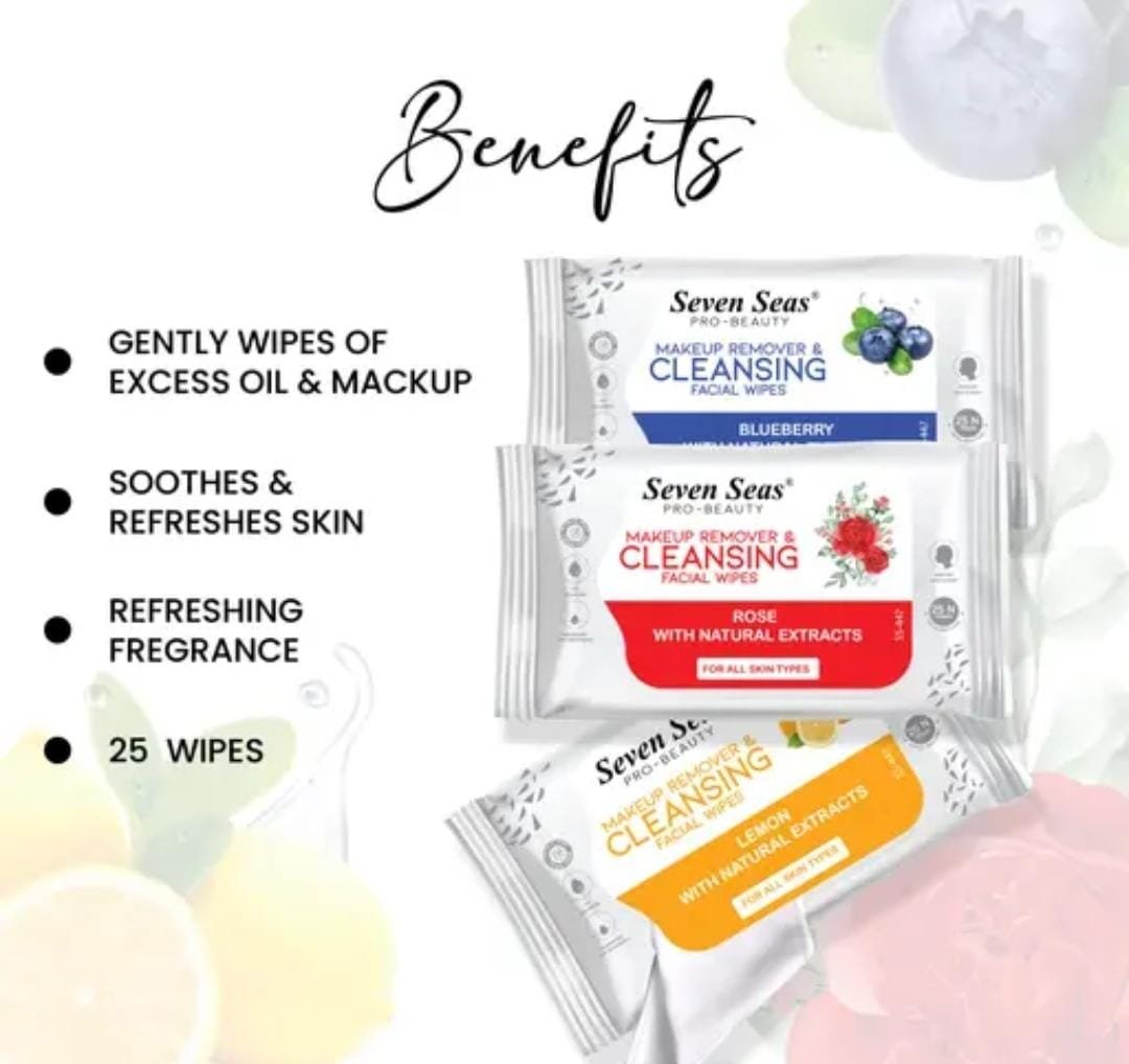 Together, this Seven Seas combo offers a complete cleansing solution—face gel for exfoliation and glow, wipes for instant makeup removal. Perfect for women who want a fuss-free, everyday essential that combines skincare and convenience in one pack.