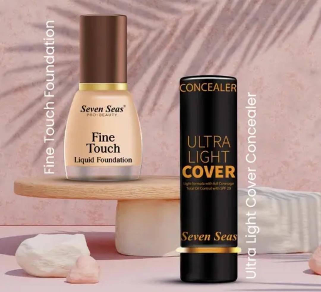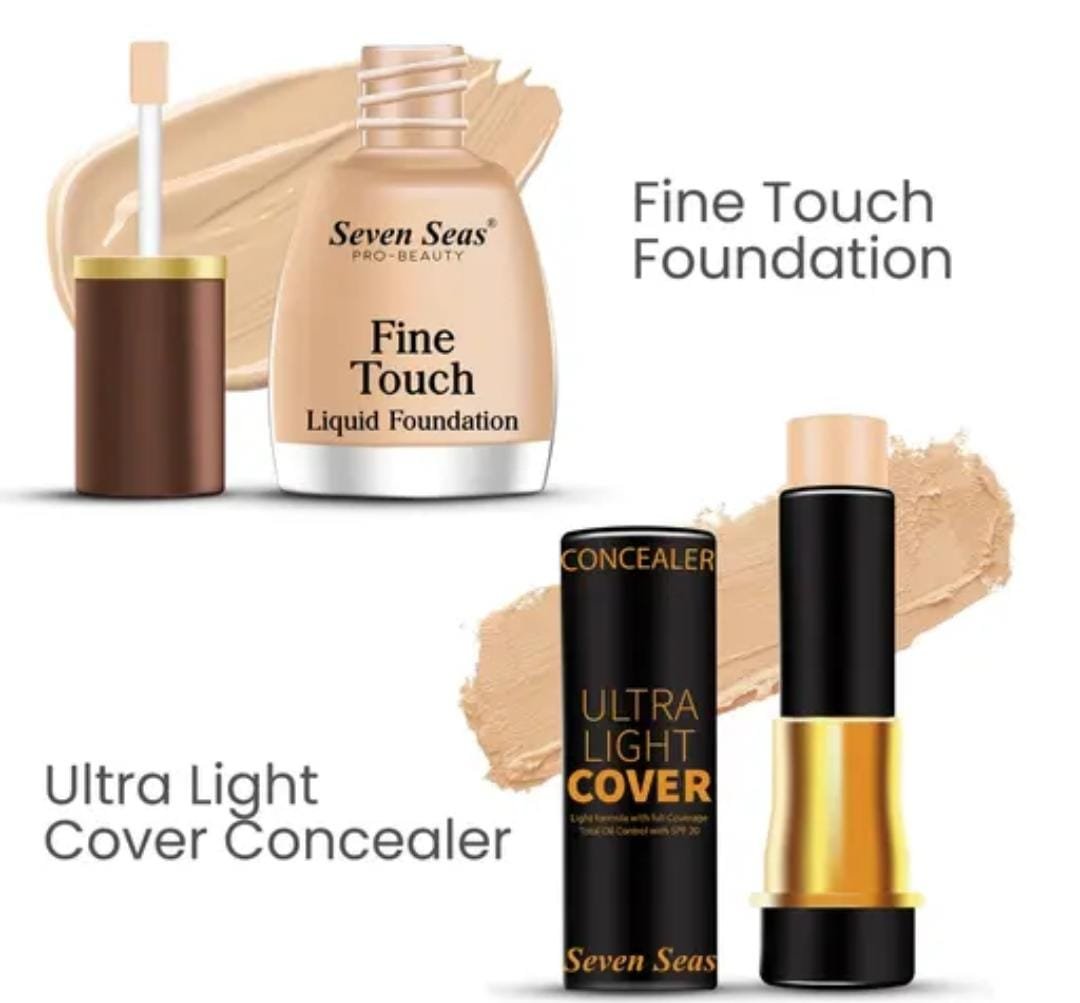 - Achieve flawless, shine-free skin with the Seven Seas Full Coverage Ultra Light Concealer with SPF 20 paired with the Seven Seas Fine Touch Waterproof Total Oil Control Liquid Foundation (Natural). This pack of 2 combo is designed to deliver complete coverage, oil control, and long-lasting wear for a radiant complexion.