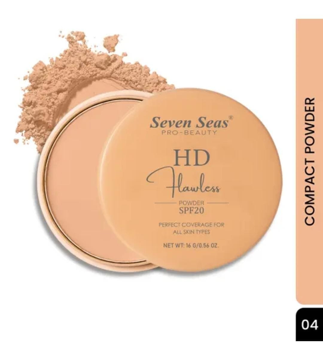 Perfect your base with the Seven Seas HD Flawless Compact Powder (Shade 04). This advanced compact combines perfect coverage, SPF 20 protection, and a soft, breathable texture to deliver a flawless complexion that lasts. Designed for all skin types, it ensures smooth application, oil control, and a radiant matte finish that looks natural both on camera and in person.