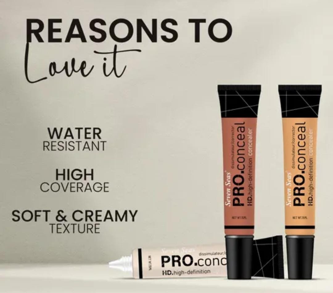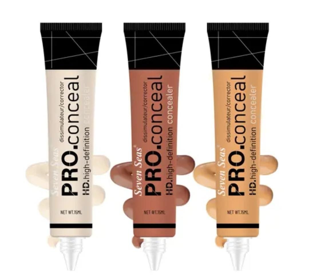 Achieve a flawless complexion with the Seven Seas Pro. Conceal HD Concealer (Pack of 3). This professional-grade concealer set includes Natural, Tawny, and Sun Beige shades, each in a 15ml tube, designed to deliver HD coverage, oil control, and long-lasting wear. Whether you’re concealing blemishes, brightening under-eyes, or evening out skin tone, these versatile shades blend seamlessly for a natural yet perfected look.