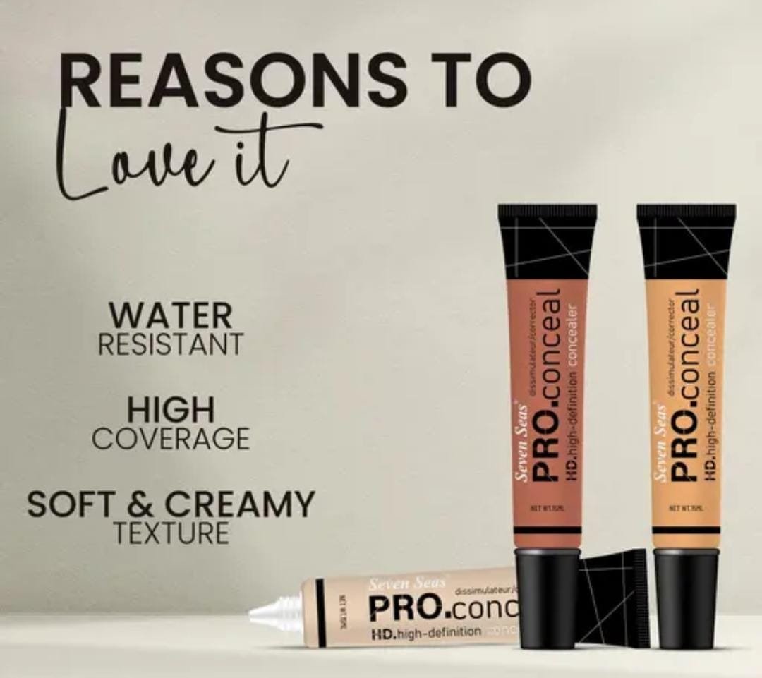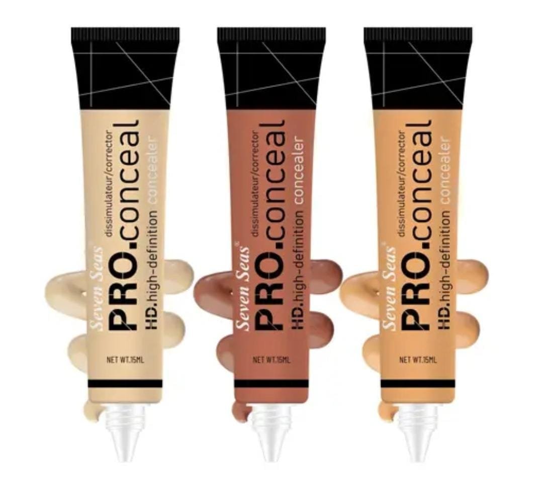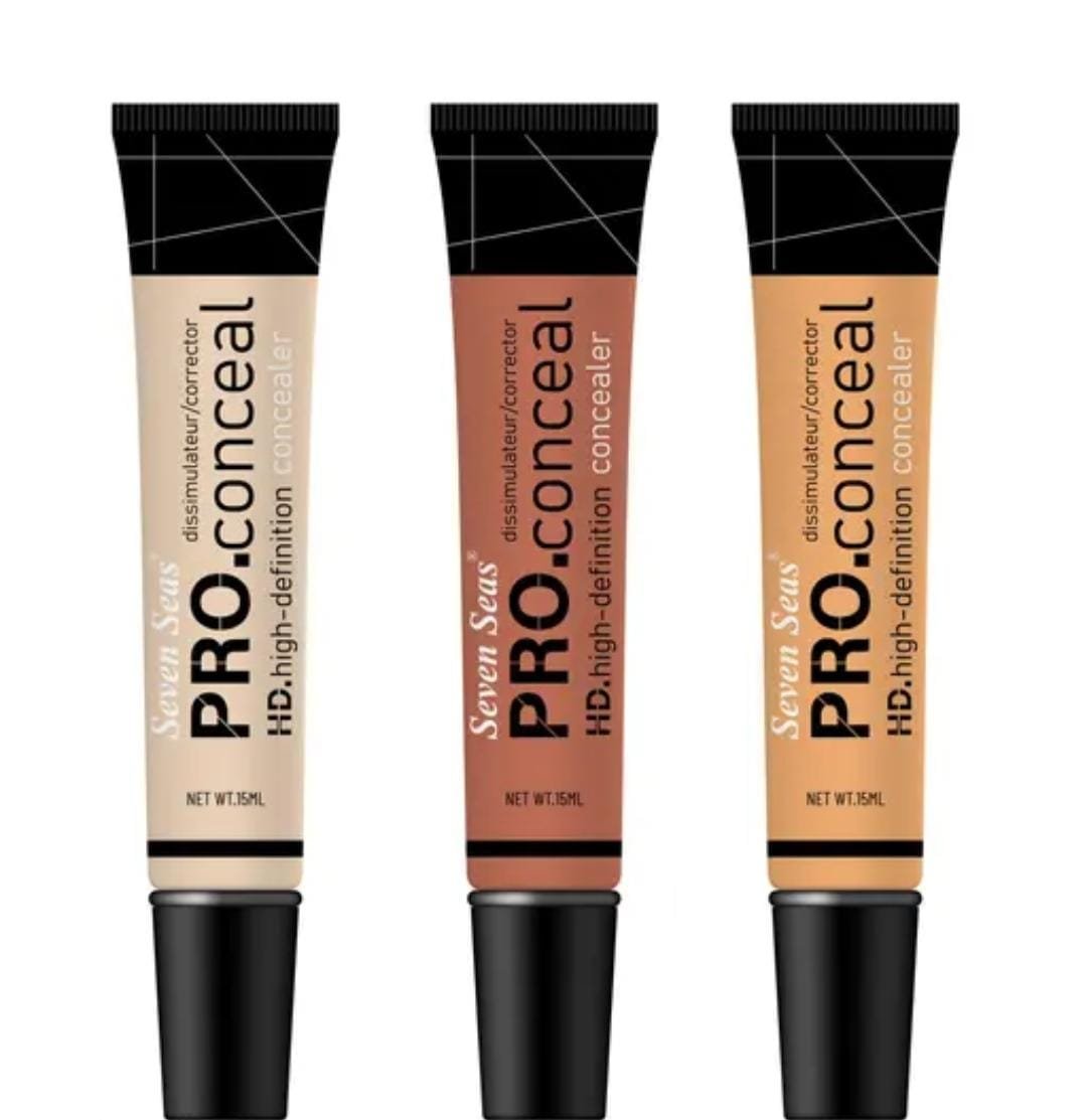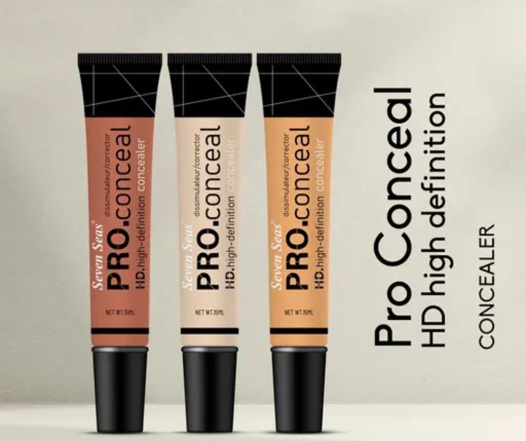 Achieve flawless coverage with the Seven Seas Pro. Conceal HD Concealer (Pack of 3). This professional-grade concealer set includes Nude, Tawny, and Sun Beige shades, each in a 15ml tube, designed to deliver HD coverage, oil control, and long-lasting wear. Perfect for concealing blemishes, dark circles, and uneven skin tone, these concealers blend seamlessly for a natural yet perfected look.