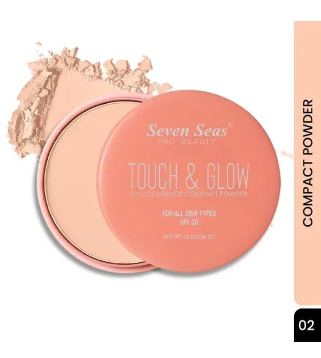 Get a flawless, shine-free complexion with the Seven Seas Touch & Glow Full Coverage Compact Powder (Shade 03). Specially formulated to deliver full coverage with a smooth matte finish, this oil-free compact is suitable for all skin types, making it a versatile everyday essential.