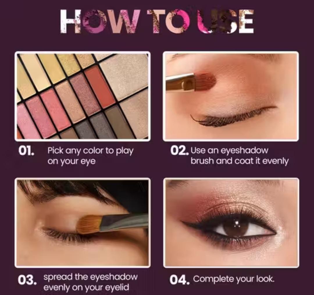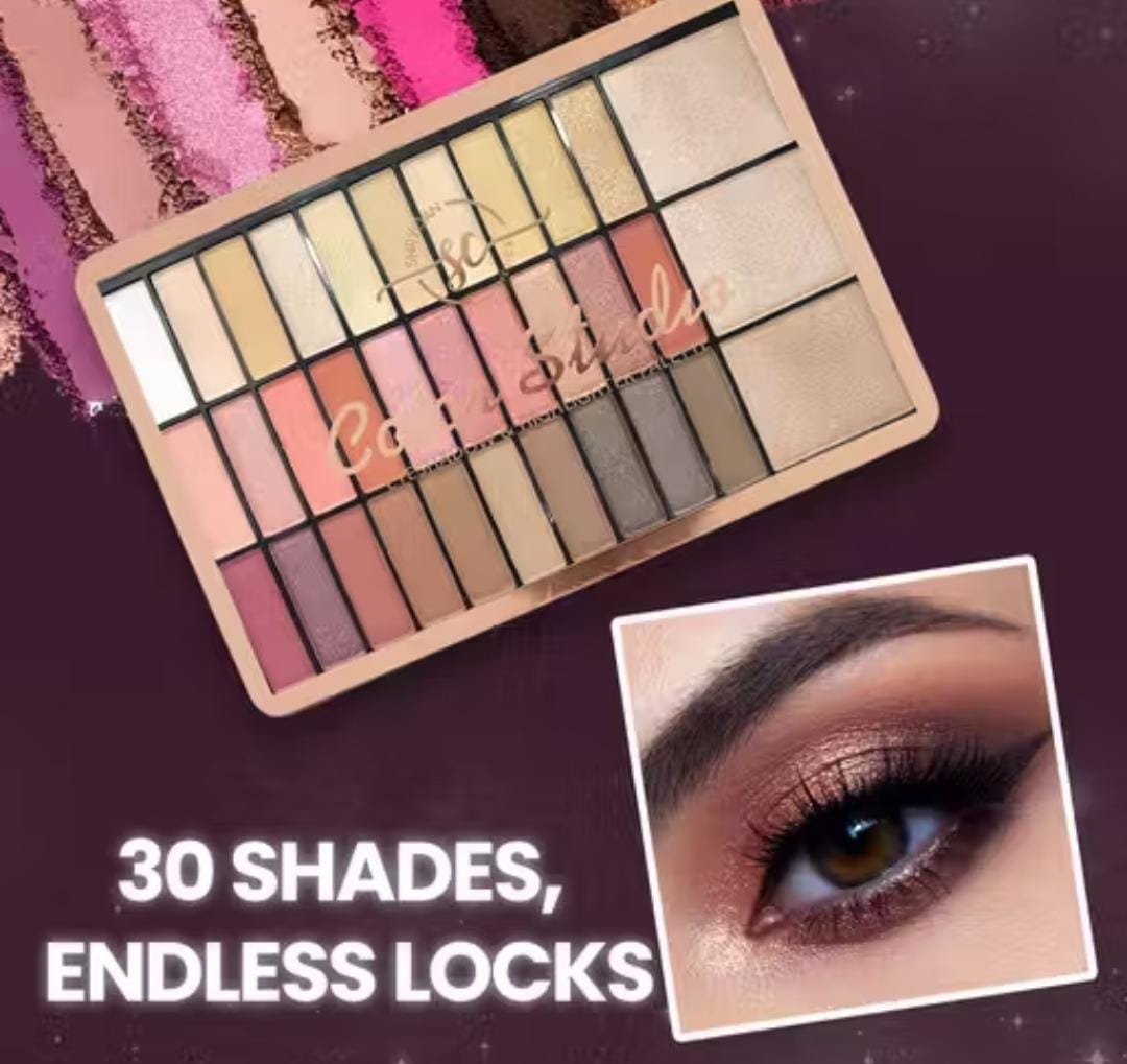 Unleash your sparkle with the Shryoan 30-Color Shimmer Eyeshadow + 3 Highlighter Makeup Palette, a vibrant, multi-functional kit designed to deliver bold pigment, glitter glam, and professional-grade artistry. With 30 dazzling eyeshadow shades and 3 luminous highlighters, this 39g palette is your all-in-one solution for festive looks, party glam, and everyday shimmer.