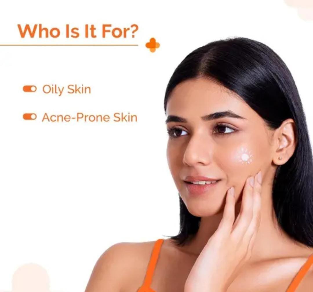 Formulated with 1% hyaluronic acid, it delivers intense hydration, plumping the skin and preventing dryness. Its oil-free gel texture absorbs quickly, leaving a refreshing, non-greasy finish without any white cast. With SPF 50 PA++++, this sunscreen ensures maximum protection while keeping your skin soft, supple, and radiant. Perfect for all skin types, it’s especially beneficial for oily, combination, and acne-prone skin.