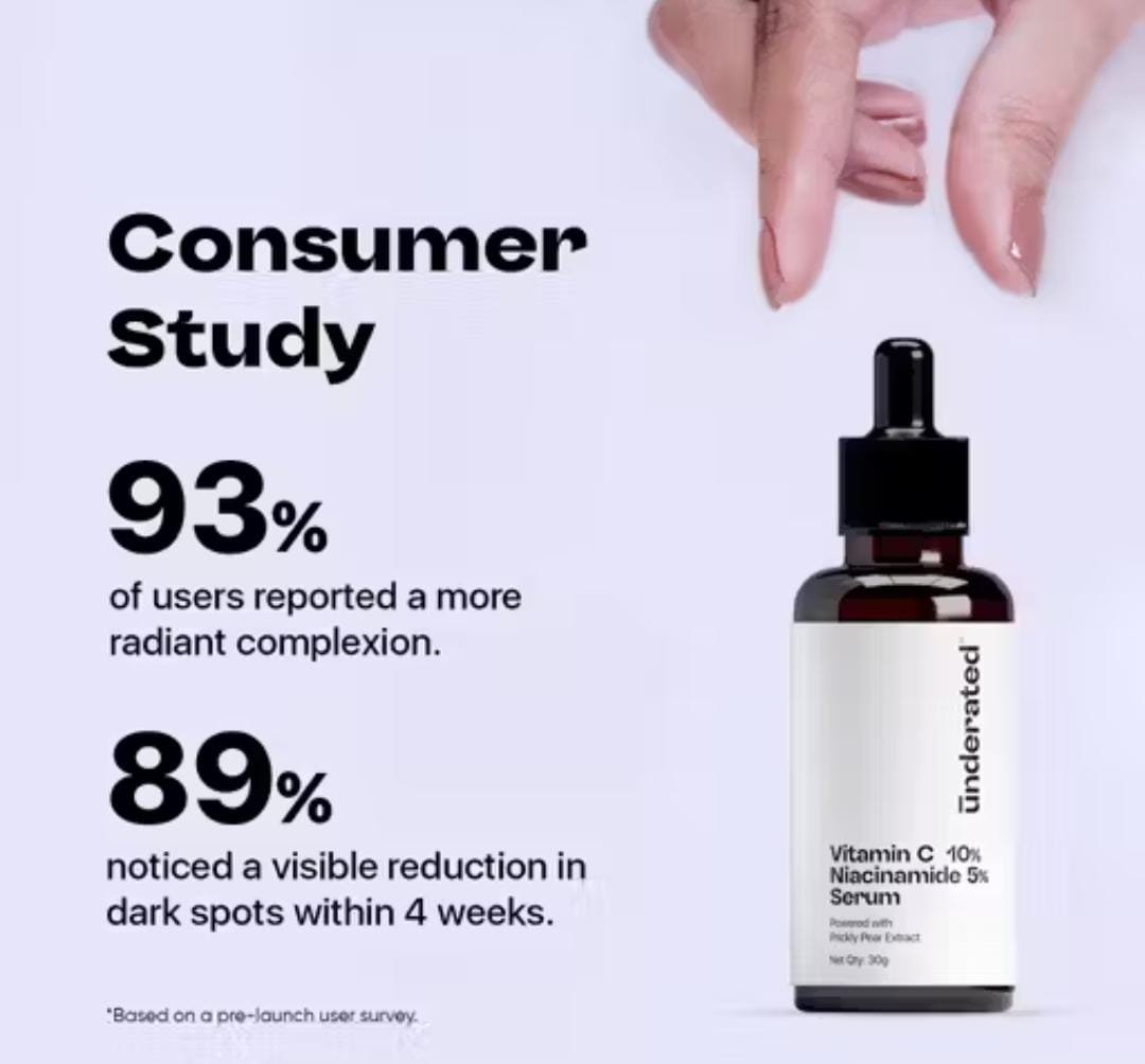 Underated is known for minimalist, ingredient-driven skincare that delivers visible results. This serum reflects that ethos—clean, potent, and designed for real skin concerns without unnecessary additives.