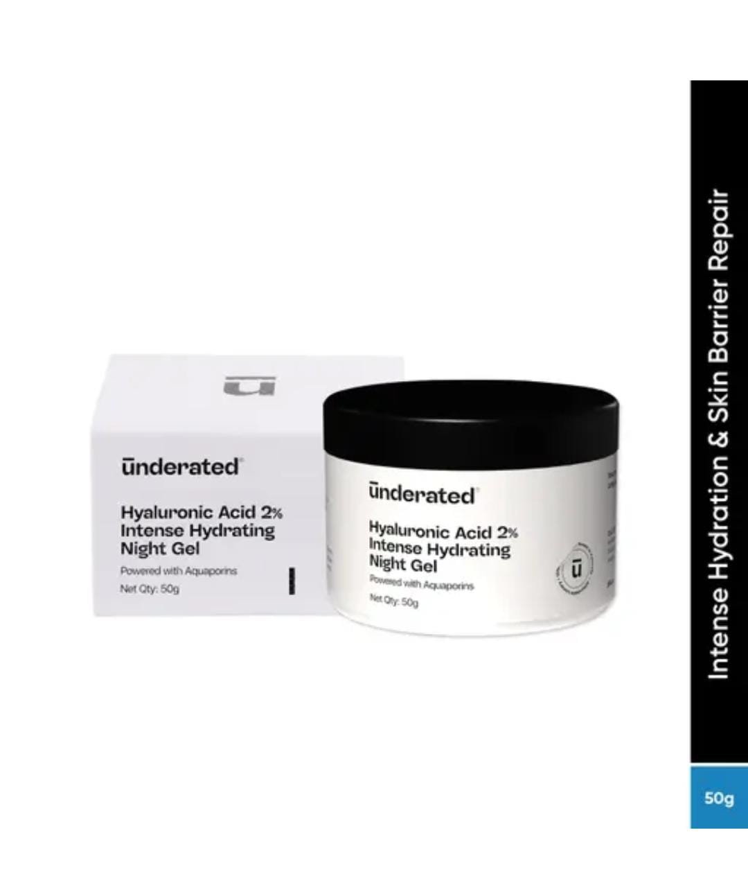 Wake up to plump, refreshed, and deeply hydrated skin with the Underated Hyaluronic Acid 2% Intense Hydrating Night Gel (50g). Specially formulated as an overnight treatment, this lightweight gel harnesses the power of 2% hyaluronic acid to lock in moisture, repair the skin barrier, and restore radiance while you sleep.