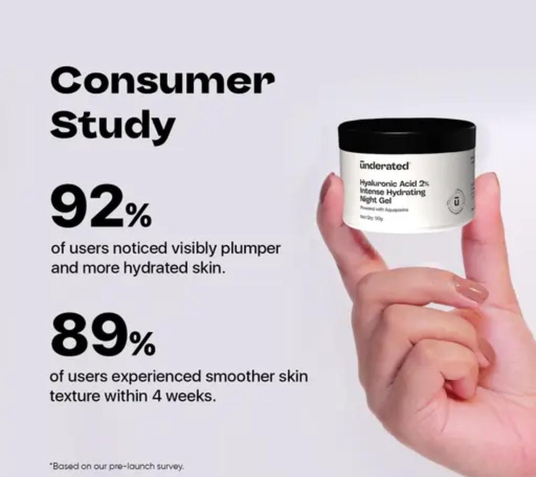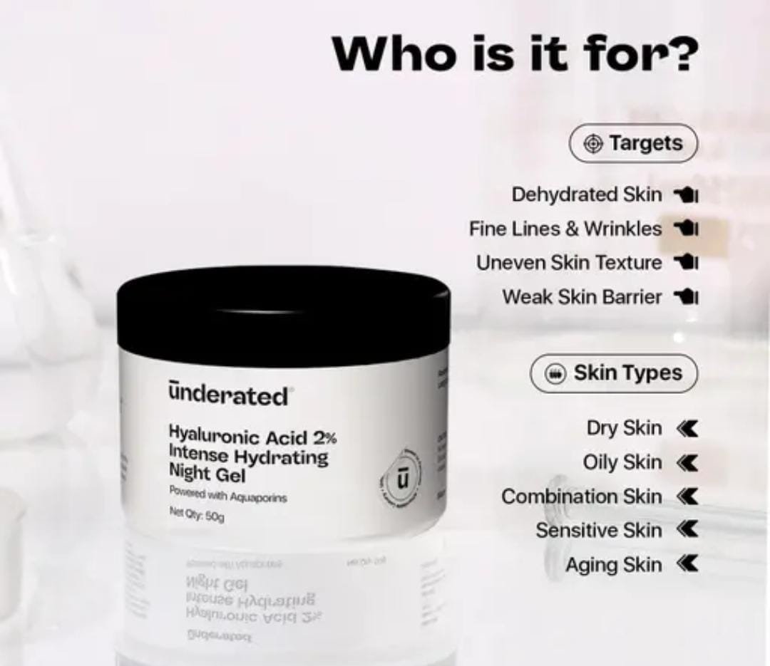 Underated Hyaluronic Acid 2% Intense Hydrating Night Gel 50g Key Features