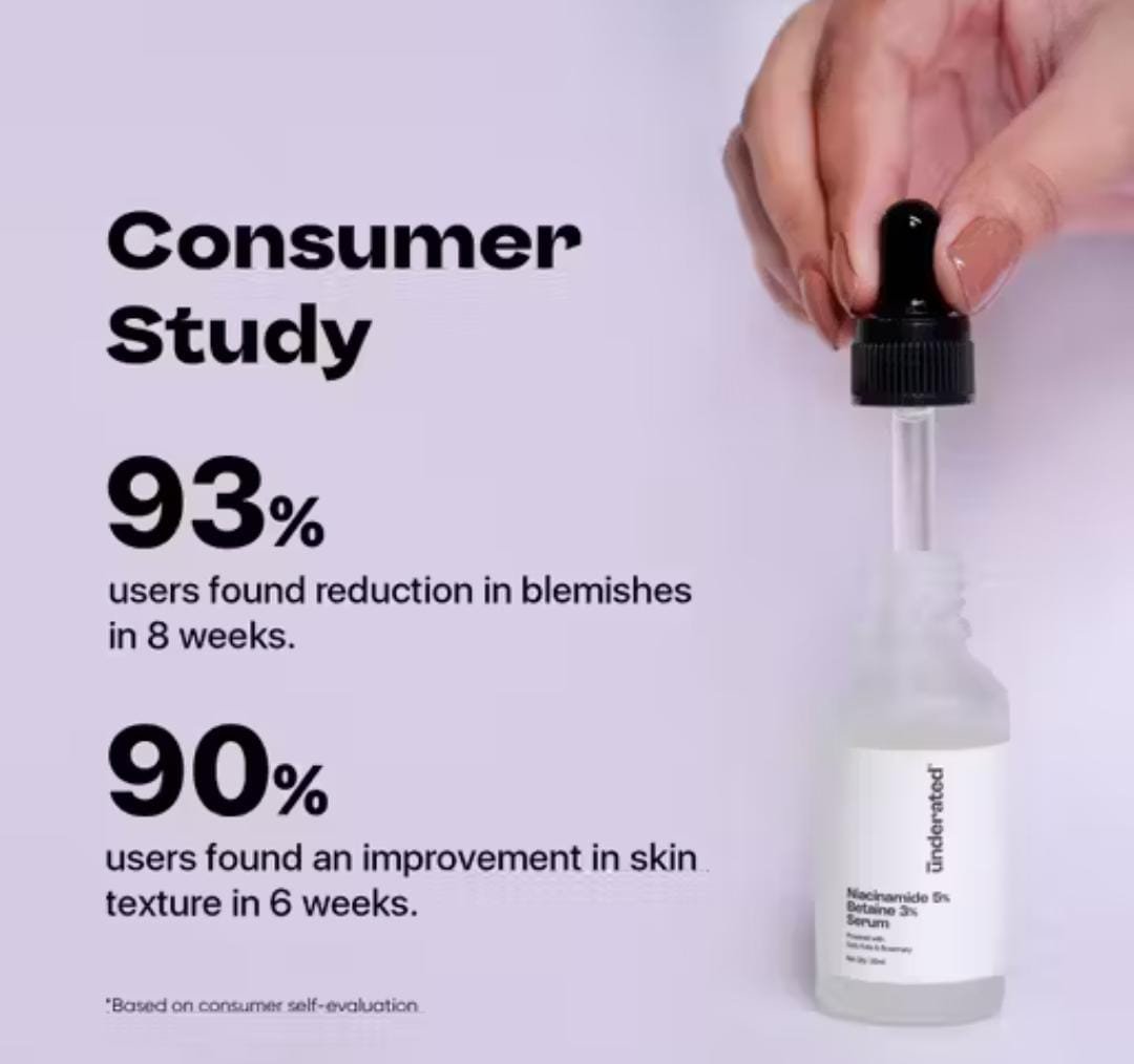 Balance, hydrate, and refine with the Underated Niacinamide 5% + Betaine 3% Serum, a minimalist skincare essential designed to target excess oil, uneven tone, and dehydration—all in one lightweight formula. Powered by two clinically backed actives, this serum is ideal for daily use across all skin types, especially oily, combination, and acne-prone skin.